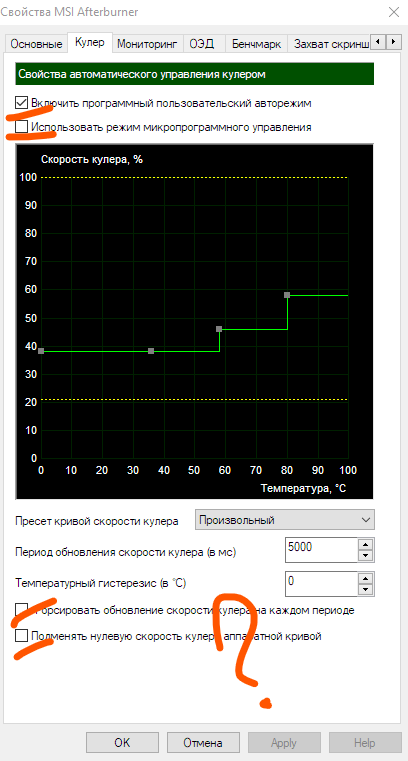 >>7565437 сматри как у меня было: в общем я купил жижку р106 збс видюшка но мне нужно было абсолютно тихо но проблема в том что в биосе жижки они почему то зашили нижний предел ниже которого не опускаются обороты на 40% (это желтая пунктирная полоска в афтербернере в настройках будет отображаться) по советам треда я взял другой биос другого вендора и перешил его (тупо софтварно), у меня получился предел 20% НО потом я понял почему жижка поставила 40%, потому что если опускать ниже, то иногда кулерки будут "срываться" те на секунду замирать а потом повышать обороты чтобы снова заработать а потом снова какое то время работают стабильно, и это заебывает по итогу пришлось выставить первую ступеньку (работа в простое) на 38% - потому что на 38 заметно тише чем даже на 41% но при этом не срывает вертушку смотреть насколько стабильно работают кулерки это смотришь нету ли пиков в графике "тахометр кулера" ну и никто не мешает тебе смазать кулерки либо вообще купить новые и заменить и тогда ты скорей всего сможешь еще ниже опустить ступеньку без срывов вертушек