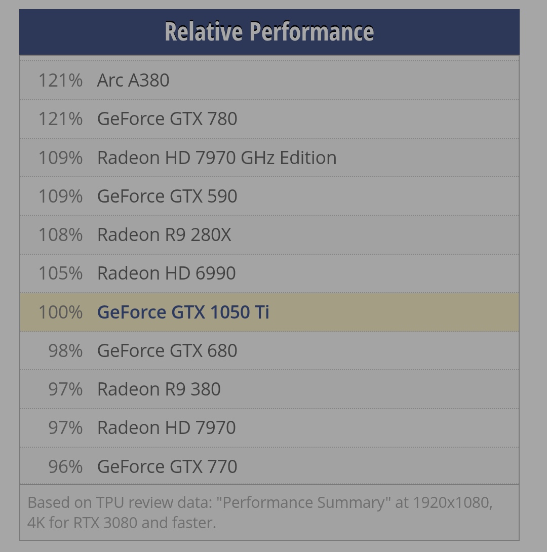 >>7573210 >r9 280х и 1050ti. Первая вроде бы мощнее, фпс больше, а предпочтительней всё равно вторая по массе параметров. Хуёвый пример, который не соответствует действительности. 1050ti новее на 5 лет и на две архитектуры, 280х ренейм 7970, которой 15 лет уже. И 1050ti быстрее была. 280х конкурент и аналог для 770 которая ранее называлась 680 и вот на них дрова перестали выходить еще раньше чем на 7970/280х. Так что мимо кассы.