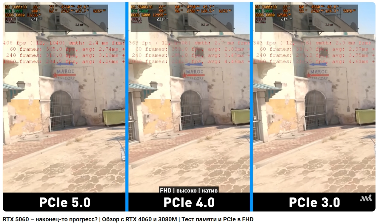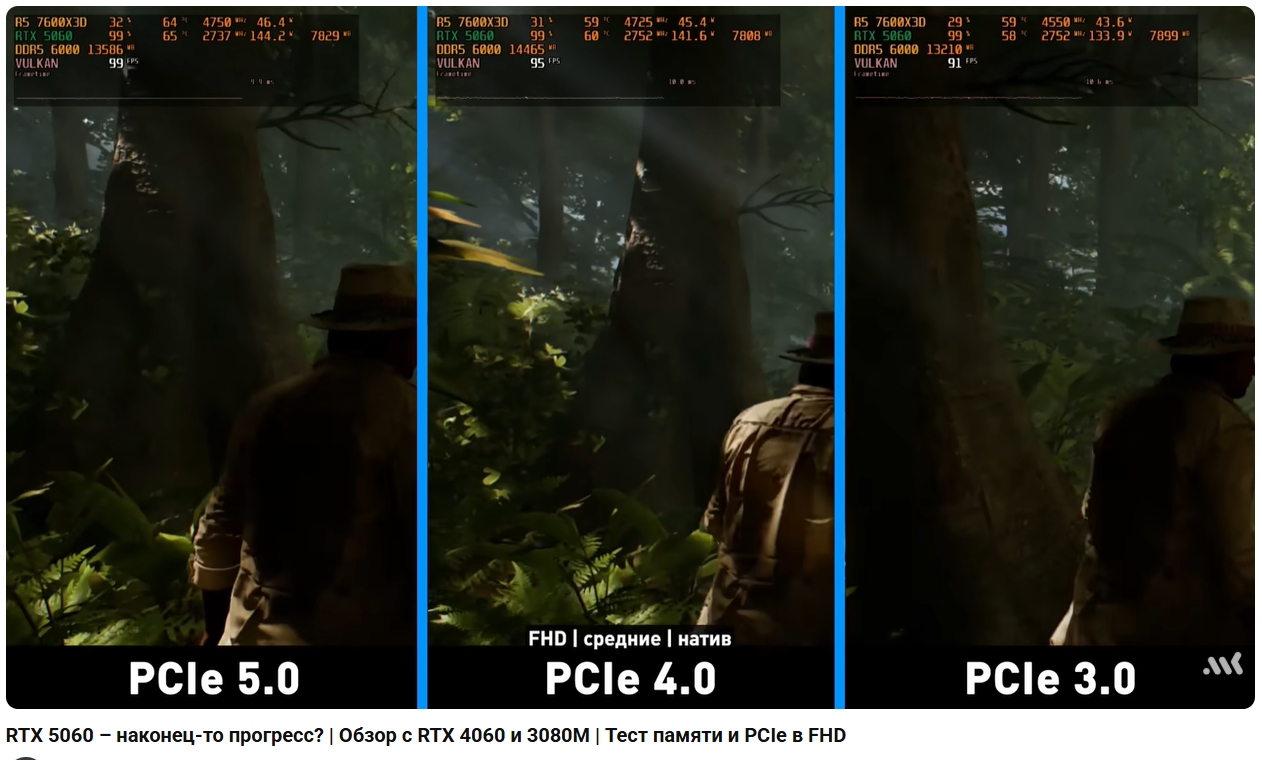 По поводу пси-е 3.0 х8, даже при условии, что нет упора в видеопамять, без псие 5.0 происходит посос. Что забавно, протык с ютуба говорит, что все нормально, а видеоряд на фоне говорит о обратном.