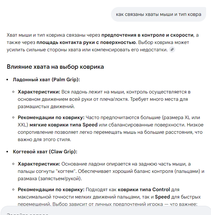 speed ковры требуют пальцевого или когтевого хвата, ладонным замучаешься елозить все завязано друг на друга, большой спид ковер, небольшая симметричная легкая мышь, пальцевый хват, логтевое движение на контрол ковре еще можно елозить кистью и ладонным хватом большой эргономичной мышкой,