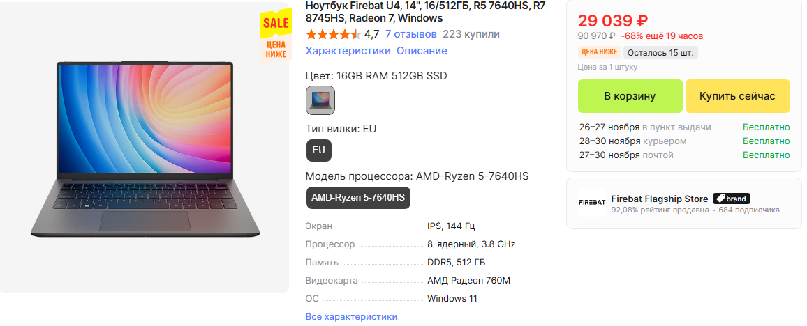 >>7566807 Не очень так как за такую цену что на пике можно найти китайца на Ультрах/Амуде новых с 780m видеоядром; С ОЗУ 32gb(иногда и не распайкой) и даже с нормальными полноразмерными стрелочками и большим количеством портов. У него ещё и распаянная ddr4 - ебать копать... ДНС хунту продает да ещё и с наценкой - цена этому аппарату ну максимум 30тысяч, а так и ещё меньше.