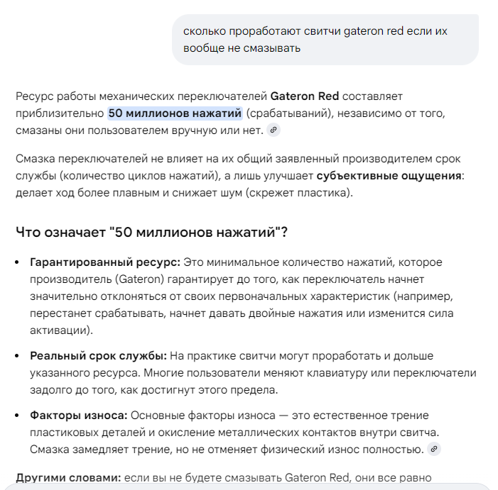 во! ИИ говорит смазочка сама выделяется ничего делать не надо не знаю зачем столько школьников на ютубе ебутся со снятием и разборкой свитчей чтобы смазать