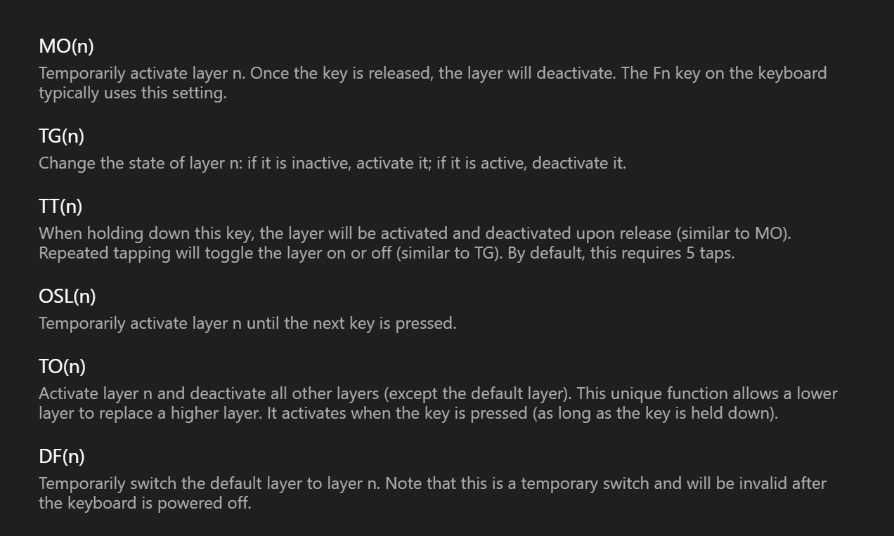 не понимаю как геймеры вообще могут 60% клавиатурами пользоваться в 95% из них клавиша fn забита намертво справа от курсора ну и че ты с ней сможешь сделать кек? у тебя в правой руке мышь же еще можно как то извернуться если fn у тебя слева сразу от пробела тогда ты большим пальцем зажимаешь fn и будет легко продавить fn слой на рядах 1-2-3-4 и qwer режим magic fn который есть в anne pro 2 наверное тоже мог бы быть оче полезен - весишь magic fn на пробел, и тогда при зажатии пробела большим пальцем было бы продавливать удобно и asdfg, t, 5 на некоторых клавиатурах при помощи dip переключателей можно было менять расположение fn например ducky one 2 mini, можно было назначить fn слева от пробела и продублировать fn на капслоке но это все равно не удобно тк fn пришлось бы зажимать мизинцем либо убирать руку с wasd чтобы зажать большим пальцем