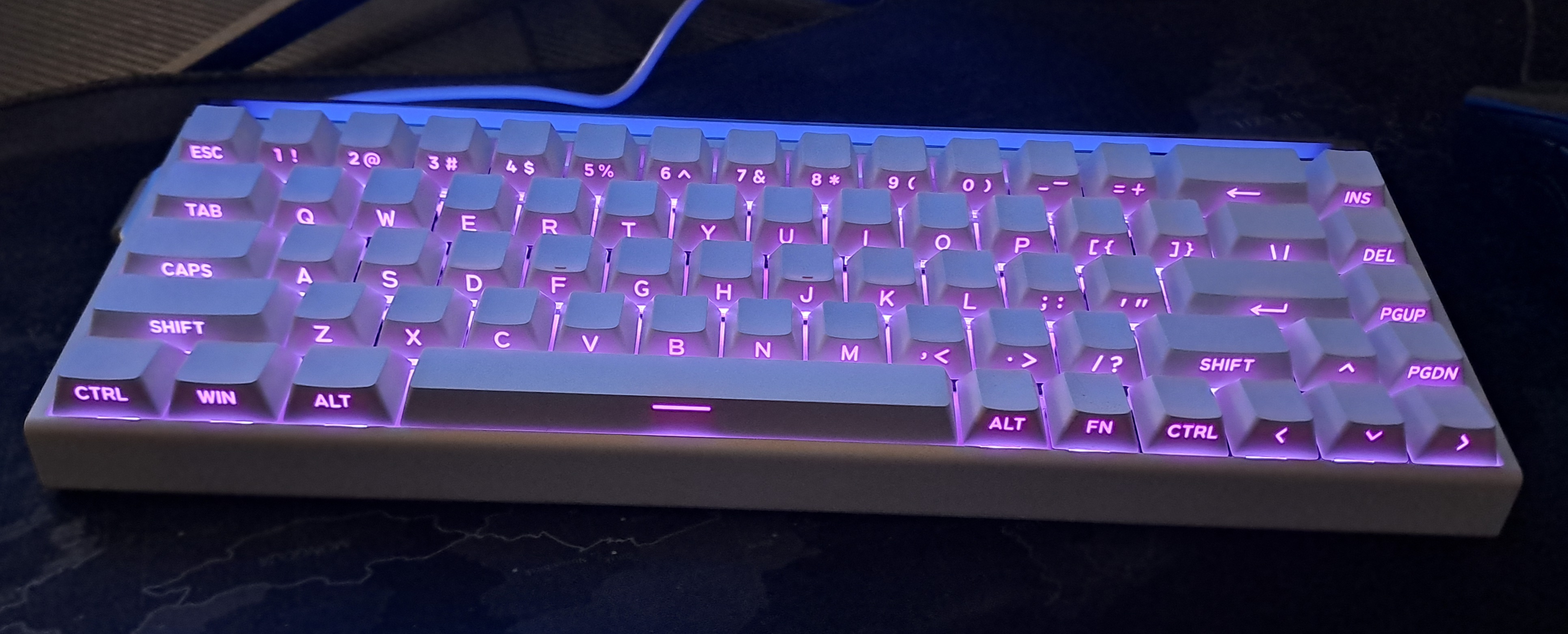 Я думал гаскет + южный светодиод дают красивую равномерную backlit подсветку. В итоге что-то более уродливое и неравномерное представить сложно. Нормально это выглядит только если смотреть строго вертикально на клавиши. Причем даже переключатели со световодом не помогают, потому что свет точечно пробивается из-под нижней защёлки свитча. Это модами никакими не фиксится?