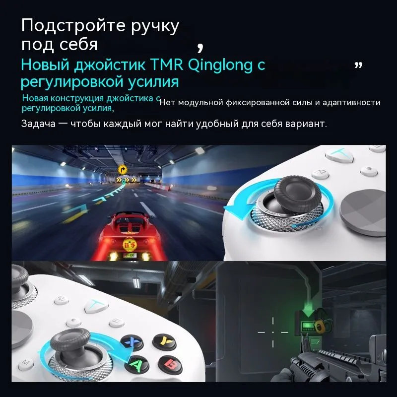 Пад имеет как стики, так и триггеры с холлом, а основание грибка стика с металлическим кольцом. Передняя панель магнитная и сменная. Стики, в отличии от обычного Z01 с монолитными резинками на них, то есть как у всех обычных падов (у обычного Z01 резинка на грибках снимается и в комплекте идет еще одна пара), триггеры имеют длинный и мягкий ход. Бамперы небольшие и работают с отчетливым щелчком. Сам пад работает по блютузу, но иногда к ним в комплект кладут донгл. Пад подключается в трех основных режимах - боксопад, дуалшок 4 и свитч про контроллер. Есть комбинации для смены раскладки с нинтендовской на обычную. Подсветки стиков как у обычного Z01 нет, но есть возможность той же кнопкой отключить подсветку кнопок (на обычном Z10 такого не было). Гироскоп есть, но скорее для галочки. Главный минус - задние кнопки. Да, они есть, но пользоваться ими нет смысла. Они не работают одновременно, то есть при нажатии одной, вторая просто не будет срабатывать, а также (возможно это брак лично моего пада) при долгом использовании левой задней кнопки начинает замыкать левый триггер на небольшой значение, то есть в каком-нибудь шутане у тебя постоянно, самопроизвольно будет происходить прицеливание раз в полсекунды, единственным решением было просто убрать бинды с задних кнопок и тогда уже ничего не "замыкало".