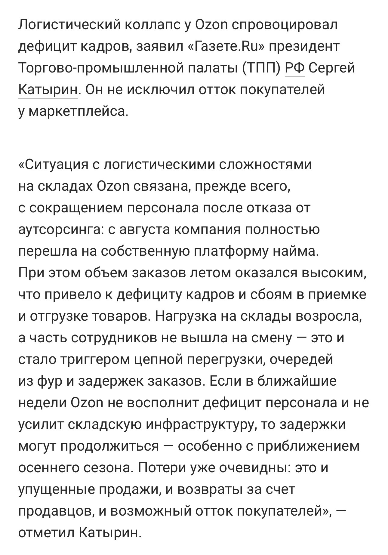 >>7577005 У меня в первый раз. Раньше 2-3 недели посылка могла идти. Сейчас же Озон настолько скурвился и «эффективно удешевил оптимизировал» свою доставку, что даже заказы в из Москвы в Московскую область идут с задержками