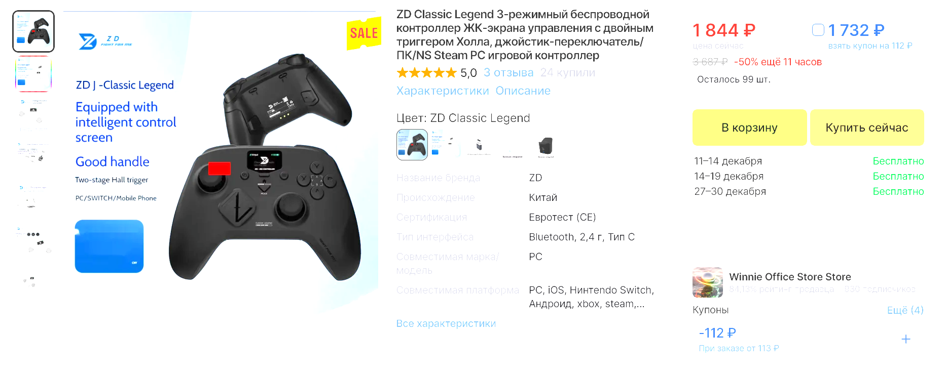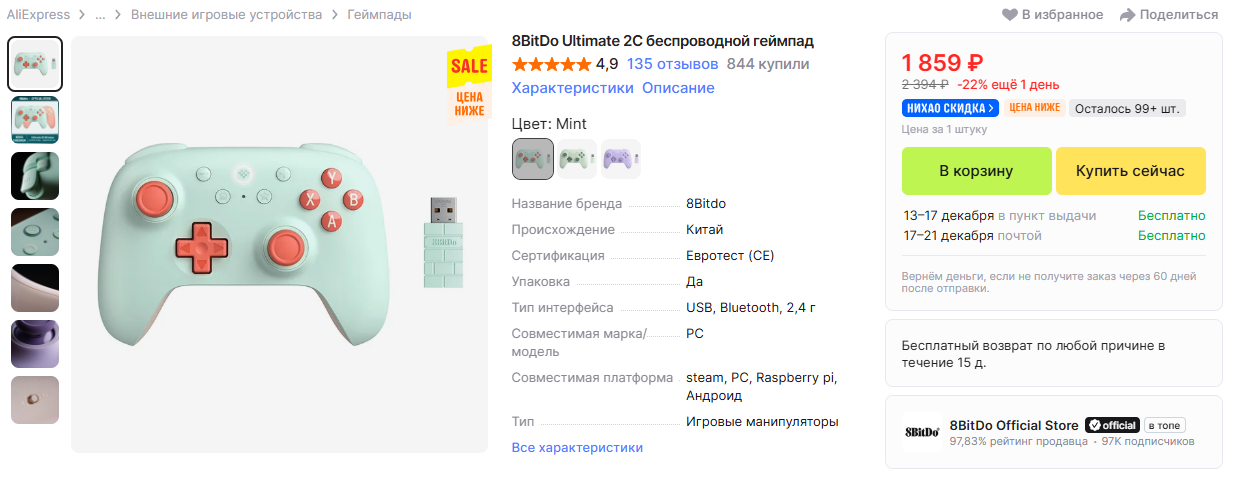 Я тогда 8BitDo PRO 3 [белый] с ДНС (4,5к рублей) или ОЗОНа (3,5к рублей, но доставка к следующему году) возьму, а там уже, по опыту эксплуатации, буду другие модели смотреть.