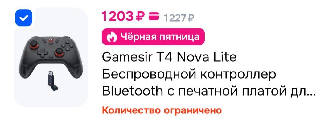 Ну что, озон привез мне GameSir Tegenaria Lite. Пластик конечно дешевенький на фоне имеющегося у меня 8бит про 2, угловастенький, 8бит в руках по приятней. Ход триггеров реально короткий, но к этому думаю можно привыкнуть, а вот стики показались наоборот чуть повыше, возможно это даже плюс. Побегал в мегабонк, ну обычный геймпад, пользоваться можно, учитывая, что там холлы, возможно даже хватит надолго, ну а что еще надо за такие деньжищи.