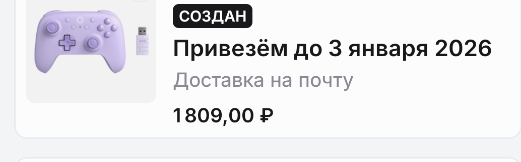Жених геймпад приехал! Как ни странно, всего на 4 дня задержались, относительно 7. Наша доставка не китайские ебланы, чтобы на складе посылки мариновать. Но забирать буду завтра, чтобы лишний раз не ходить, там ещё мелочь всякую привезут.