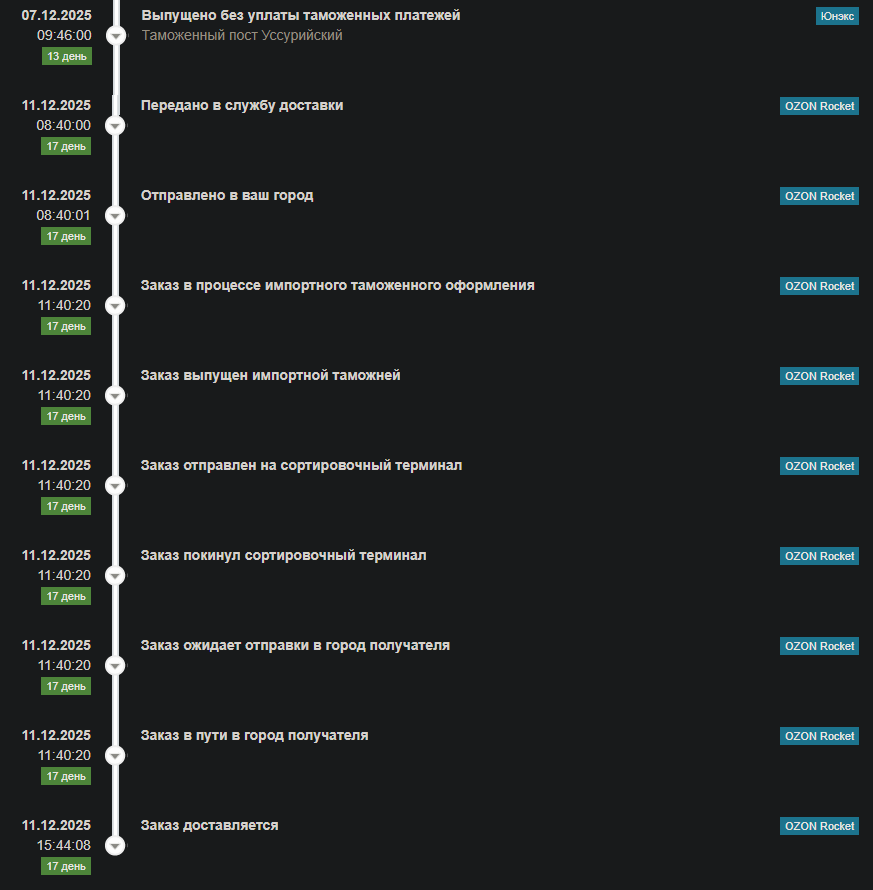 Короче я похоже действительно остался без геймпада. Озон проебал заказ и ставит вот такую хуйню у себя на сайте. Я погуглил, такой статус ставят, чтоб ты не мог отменить заказ и вернуть деньги, мол заказ не мертвый и 20 дней с последнего обновления не прошло. Не пользуйтесь озоном глобал, никогда.