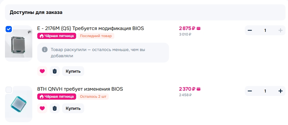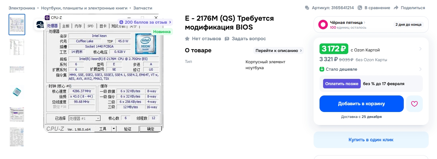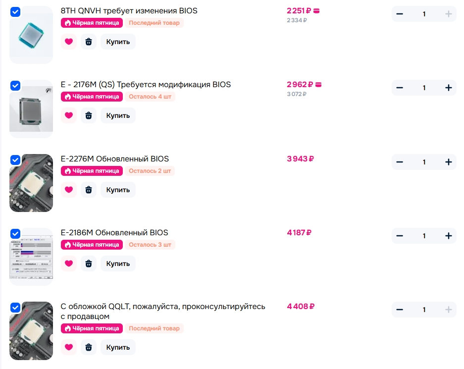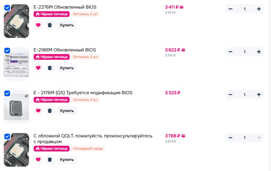 Короче заказал сейчас e-2276m за 3950 примерно, изначально хотел заказать 2176-м за 3900, но потом увидел купон при оформлении, что за заказ на 4000+ скидка -500 рублей, и тут же сообразив, поменял на 2276-м, т.к. он стоил 4400 примерно, итого вот и получилось чуть дороже на 50 рублей, ну и производительной судя по всему на +3-5% ну как мы любим Программатор у меня есть. Ноут есть, так что прошью бивас. Продавцу так же написал что бы выслал биос если найдется. Старый свой 1240в5 думаю поставить в другую материнку с авиты, озу любую 8-16гб д4 за тыщи две. купить корпусню, накидать туда жестких на 8-12тб, скачать всю библиотеку стима, флибусту и всё, я даже нормальную видюху ставить туда не буду, тупо достану 730 с полки, а может и вообще 1010-1030 куплю бу, или другую пассивную затычку. А так у меня уже есть 2тб с аниме\фильмами в ав1 кодированных, плюс еще 2тб с экзешниками разных игр. скучно не будет. А то не знай что там после НГ будет с новыми нологами на электронику. Ну как вам план?. Надежный как швейцарский сыр, я считаю.
