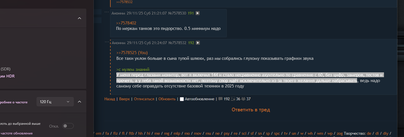 >с нулем знаний У меня перед глазами монитор, вот я включил 144 и стало несравненно ахуительно по сравнению с 60, без цифр, замеров, тестов и прочего, а у тебя такой возможности нет, поэтому спор идёт исключительно из-за твоего желания дальше набрасывать, ведь надо самому себе оправдать отсутствие базовой техники в 2025 году