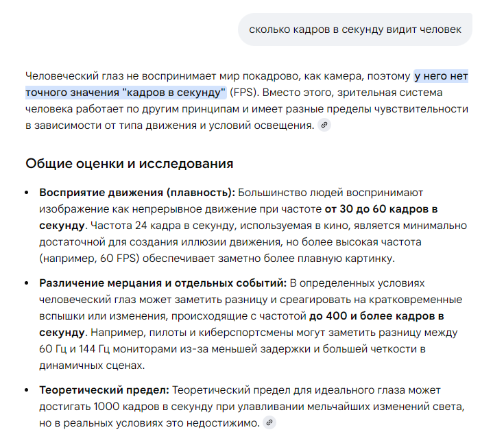 >>7578532 у тебя глаз 24 кадра в секунду считывает и не больше а все остальное домысливают нейроны в башке базовую прошивку не изменишь, по крайней мере на нашем веку