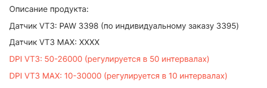 >>7579953 Короче, смотри. Начнём с простого. Буква s у троек - чисто про размер мыши. Форма одинаковая, чисто ПОБОЛБШЕ и ПОМЕНБШЕ сам размер корпуса. Всё. Вес у эски вроде на несколько грамм меньше, что логично, сам загуглишь. Далее - Max vs обычка. У максов микрики оптика, у обычных - механика. Сенсор у максов чуть пизже, но тут уже похуй, и 3398 и 3950 - топчик, разве что для стеклопадов лучше брать 3950. Нахуй описания, нахуй всё, смотри на карточку товара. И брать только у проверенного продавана, да. Возвращаемся. То есть троек всего четыре штуки: ПОБОЛБШЕ РУКА - VT3 и VT3 Max, ПОМЕНБШЕ VT3s и VT3s Max. Тебе, как я понял, нужен размер побольше, а начинка пожирнее. Это VT3 Max. Дорого, но всё ещё хочешь большую мышь? Обычная VT3. У них обычно разница в стиле 3к и 4.5 соответственно. Про эски сам по аналогии догадаешься. Конкретно по ссылкам: https://aliexpress.ru/item/1005007636398924.html?sku_id=12000042008243594&spm=a2g2w.stores.seller_list.12.9cf96776A2gExC Это обычная VT3 за 2700р. https://aliexpress.ru/item/1005009402050588.html?sku_id=12000050867090841&spm=a2g2w.stores.seller_list.7.9cf96776A2gExC А это уже она же, но Max, с начинкой пожирнее, 4200р. Насчёт магаза - мы у него всем тредом VT2 Max за 2700 закупили, лол, моя час назад была зарегана почтой ВСЖ внутри страны. Надо реально написать рапу и попросить деняк.