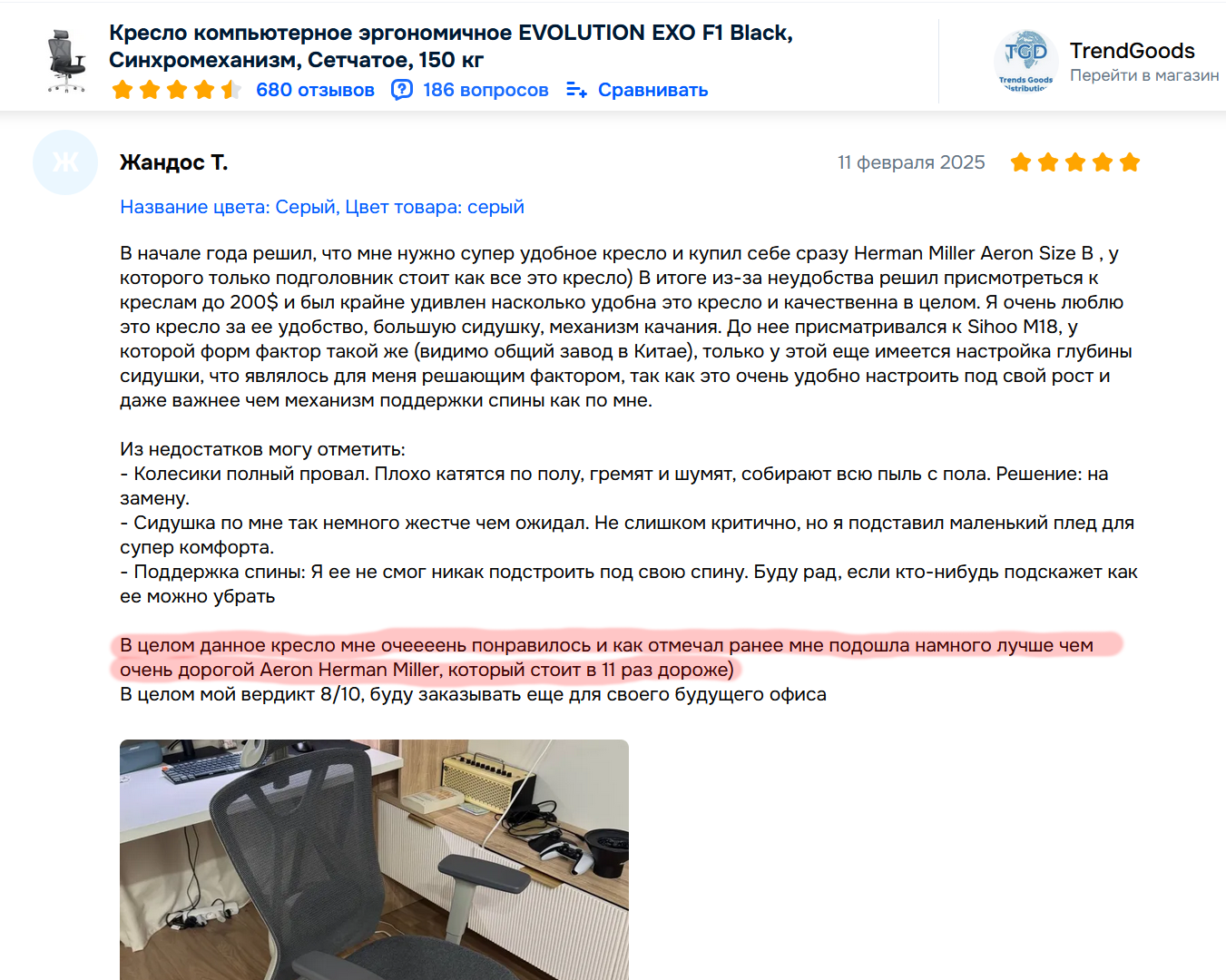 Жандос всё по фактам разложил — да проебал деньги на аэрон, да оказалась хуета. Купил дешевое китайское кресло, и оно оказалось не идеальным, но гораздо удобнее.