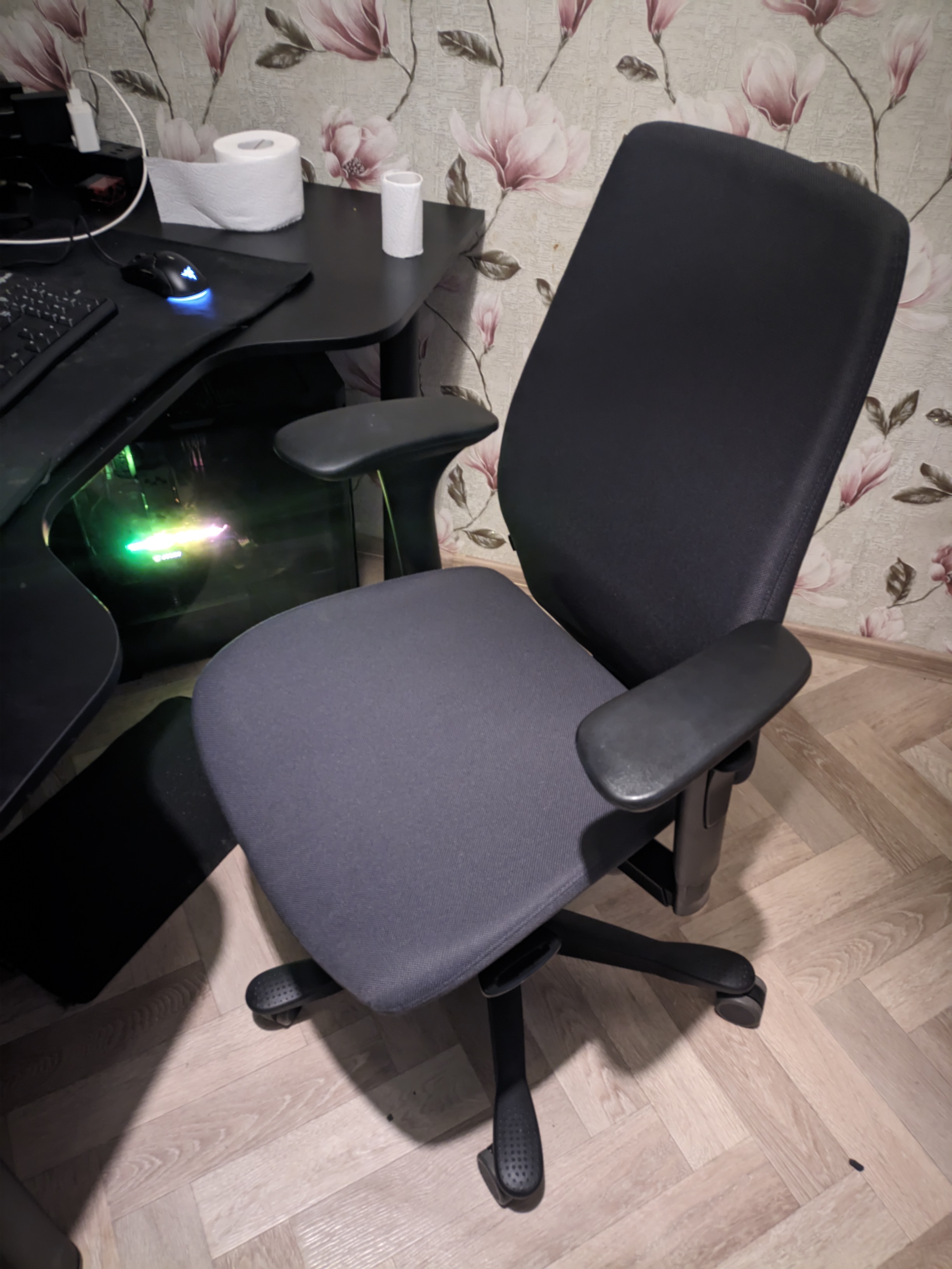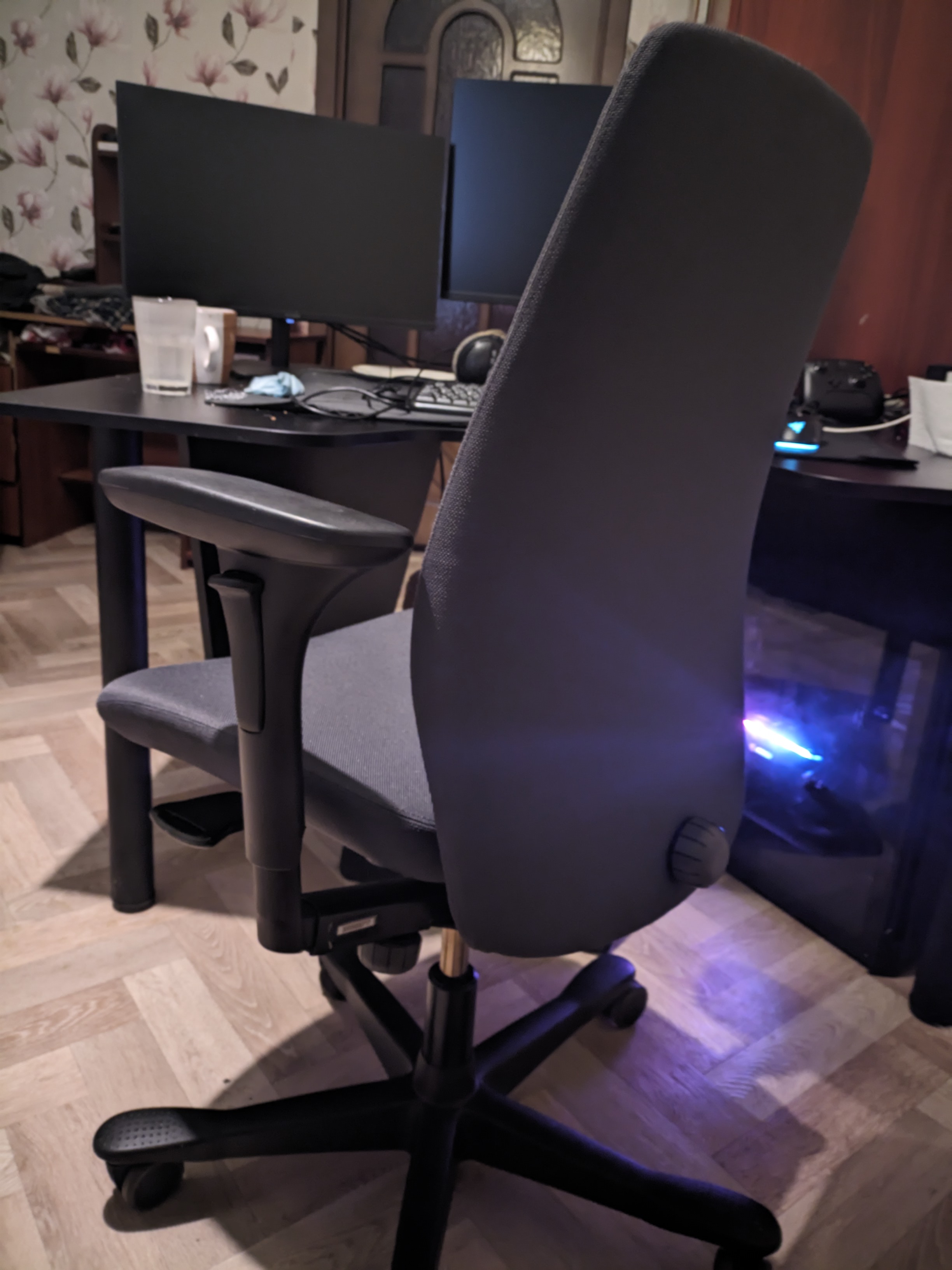 В общем пришёл мне kinnarps 5000 с авито, отличается от 8 pro лишь короткой сидухой и отсутствием подголовника. Выглядит как новый, сидушка вообще не продавлена, на моем игросрале за месяц впадина до фанеры на месте жопы образовалась, посмотрим как тут будет. Не знаю что добавить, это тупа то самое кресло за 15к, никаких скрипов, черкашей, все регулировки работают, ткань просто в охуенном состоянии, лишь газлифт выглядит обосранным. Для шпал не подойдёт, нужно модель старше брать, тут сидуха укорочена, даже я карлан выдвинул чуть вперед.