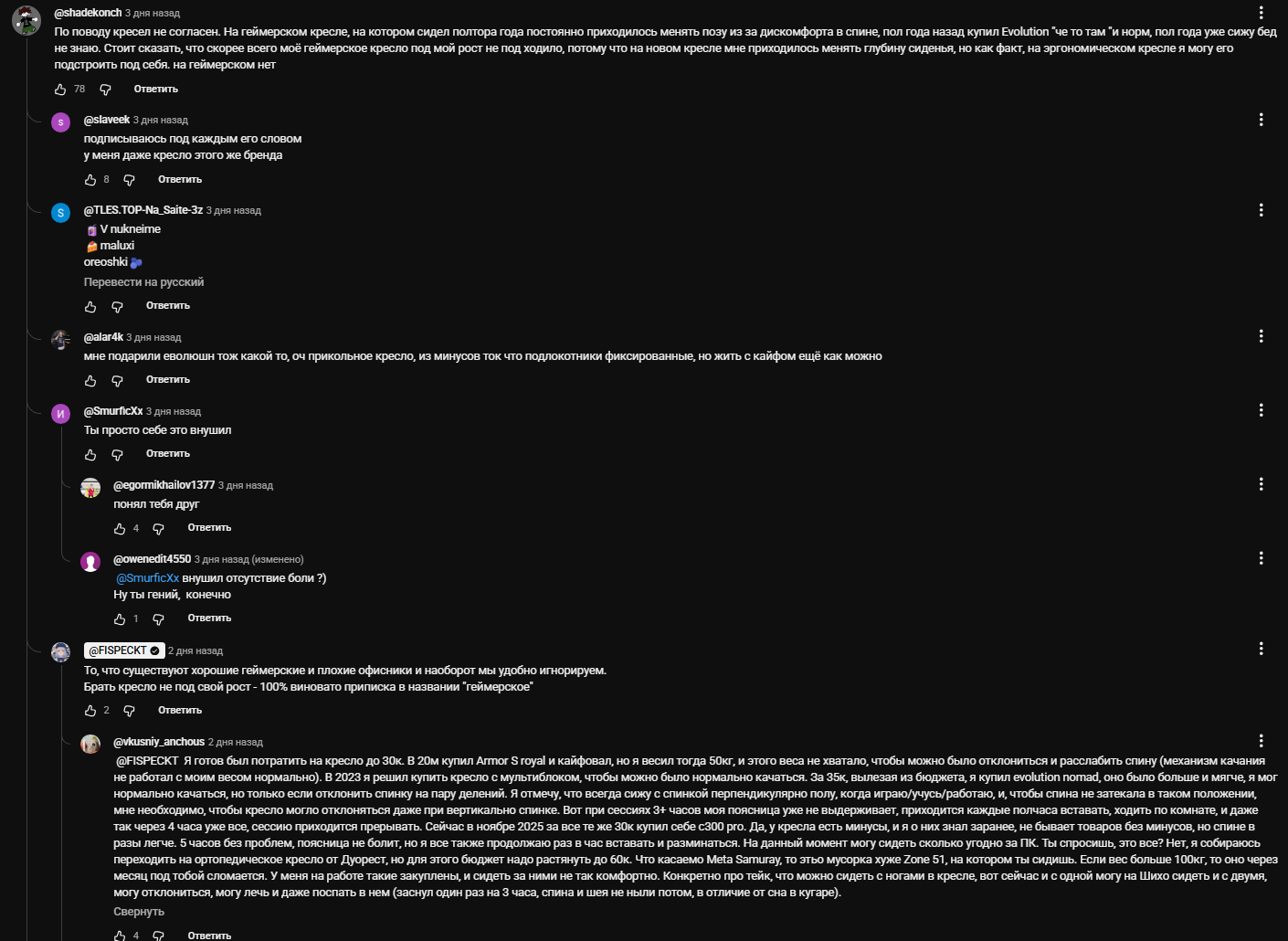Какой же блядь нереальный прогрев все эти эргономичные кресла, даже от именитых фирм за 300к. Игросрал и кресло рукоблудаводителя в раза комфортнее, вот там реально спина и жопа не устает ибо можно вертеться как пожелаешь, сидеть креветкой, ноги под жопу, на кортах А в эргокале сидишь всегда в одной позе, сзади давит поддержка поясницы. К слову про боковую поддержку игровых кресел - это реально удобно, когда расслабил ноги они разводятся и держатся на собственном весу что неудобно, а с поддержкой упираются в эти крылья и заебись, либо когда хочется облокотиться на бок и там крыло. В общем прогрели вас не игросралы, малютки, а корпосралы, видать удалёнка дает о себе знать, стульчики то в офисы больше не закупают, надо гоям впаривать