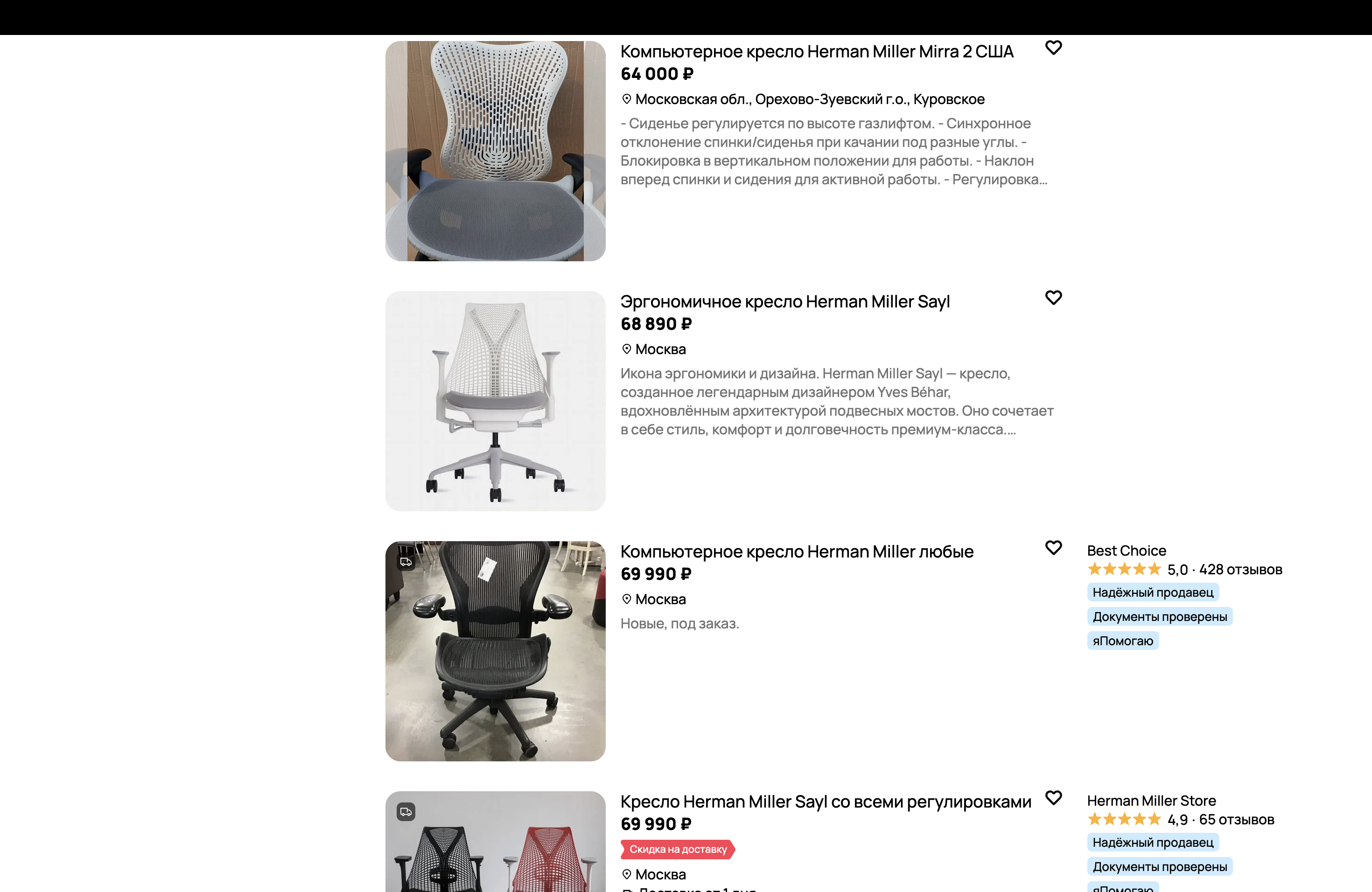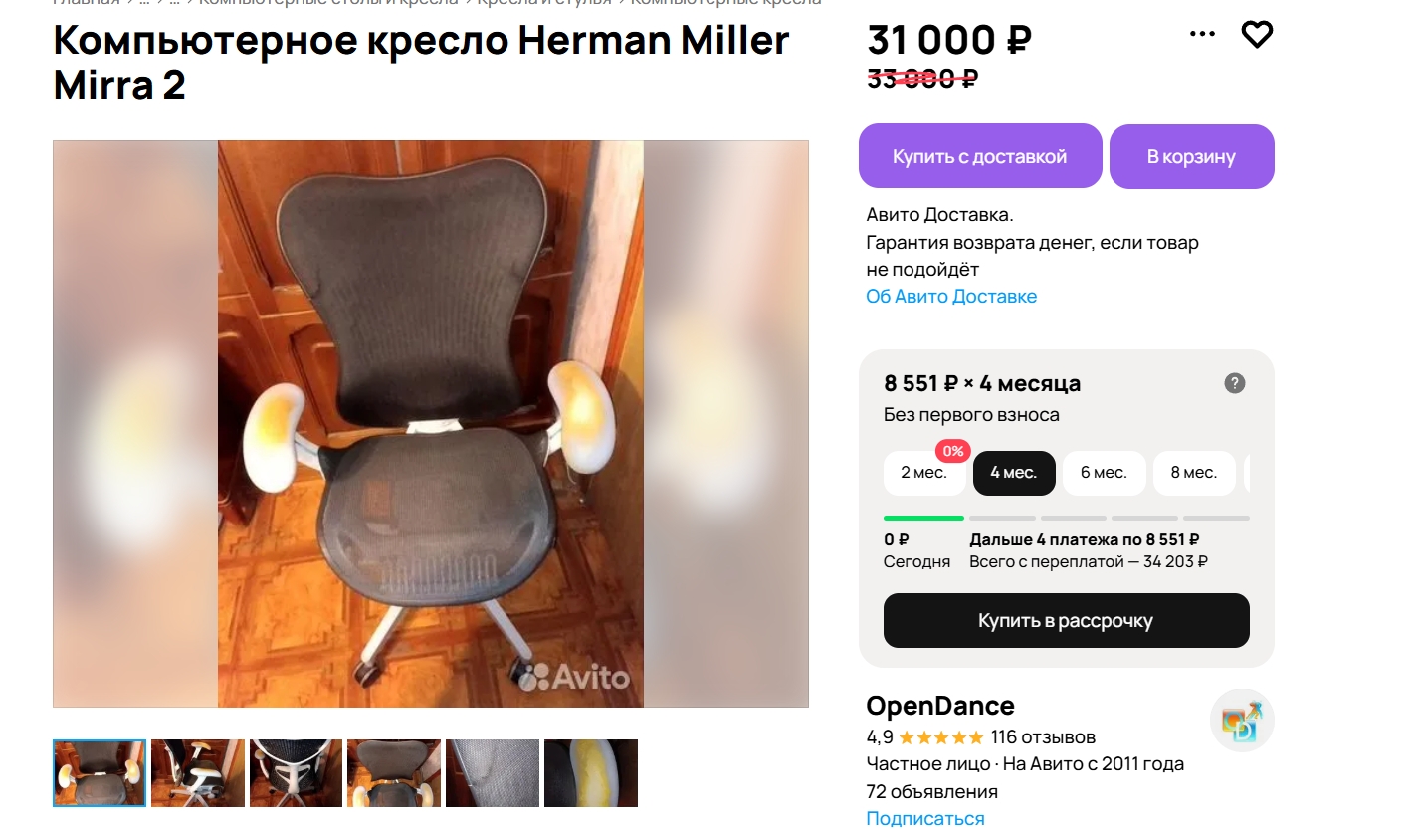 Ну и посмотри выше, анон как раз брал второе Mirra, но в состоянии нового кресла и не сильно дороже, а не тот пиздец, который ты скинул (с другой стороны, за 30к при наличии всех опций заваливается ебало и чистится, если само кресло в хорошем состоянии).