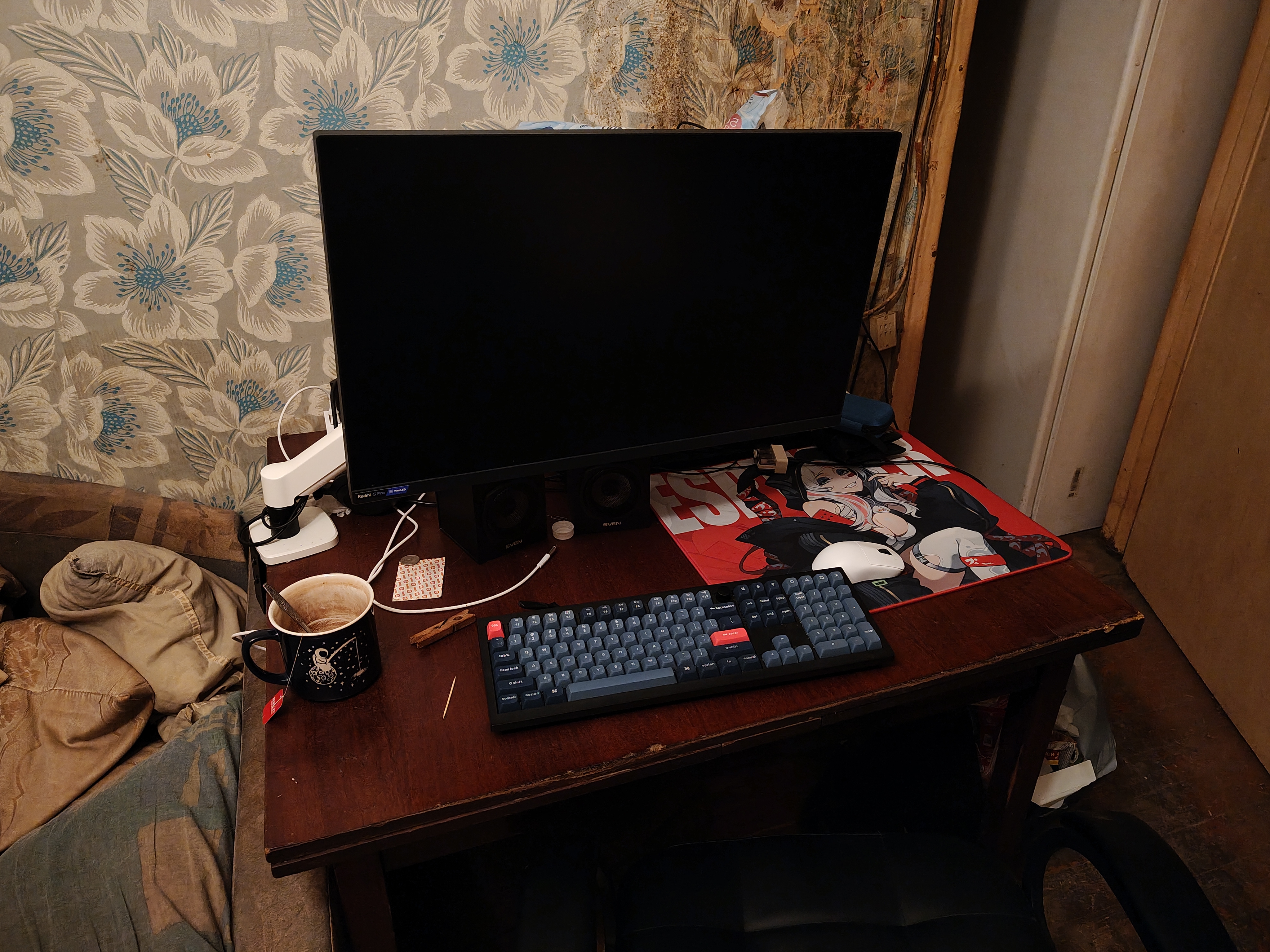 В перерывах между командировками и работой делаю ремонт своими руками. Удалось выкинуть компьютер из спальни. Переехал (как и подобает двачеру) за шкаф. В новогодние праздники надеюсь добраться до почти собранного NAS. Прошлая вариация сычевальни была в шапке прошлого или позапрошлого треда.