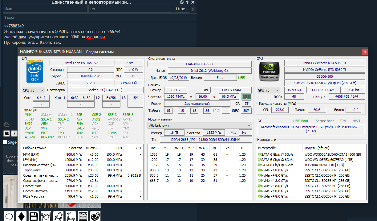 Прошу помощи и совета. Имею процессор e5 2620v3 (без анлока турбобуста) на материнке HUANANZHI X99 8M-F ну и видюху 1060 3Gb