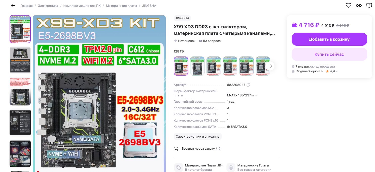 Оптимальная мат.плата машинист, доступна улучшенная версия. Но ставить процессоры с тдп выше 100 не имея нормального продува корпуса я бы не стал. https://xeon-e5450.ru/socket-2011-3/machinist-x99-k9/ Актуальный ТОП ЗА СВОИ ДЕНЬГИ - HUANANZHI X99-QD4 (считается максимум для 2666v3\2667v4), недавно вышла новая ревизия данной модели платы с незначительными изменениями. https://xeon-e5450.ru/socket-2011-3/huananzhi-x99-qd4/ Так же, для тех кто хочет купить китайскую плату по цене брендовой, есть Huananzhi f8, а для тех, кто еще хочет переплатить за ддр3 есть Huananzhi TF.