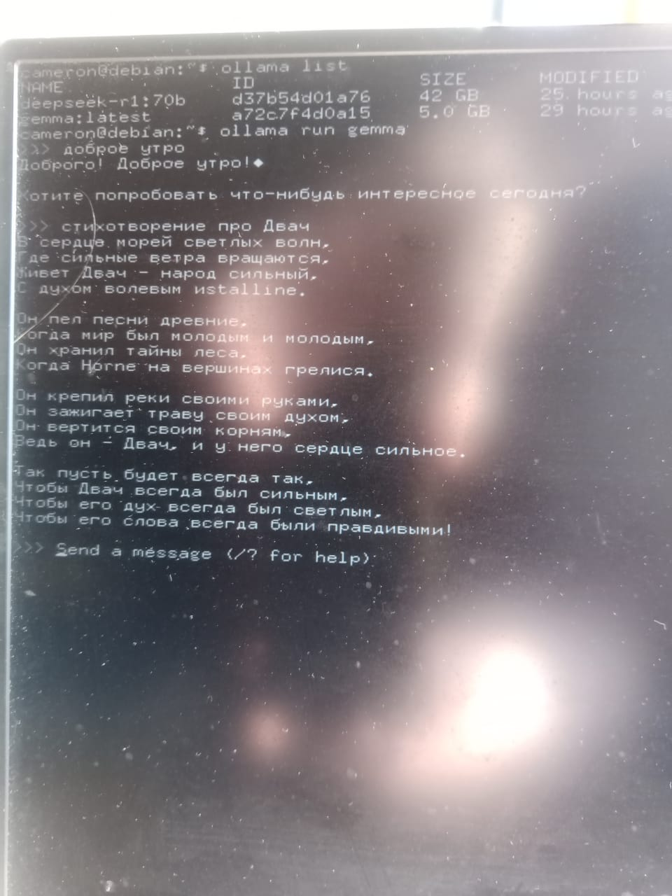 Кстати, держу в курсе. Нейронка дипсик 70В прошла мой маня-тест по исключению отрицательных утверждений из текста. С первого раза. Нейронки от 7B до 30В все обосрались. Нейронки меньшего размера даже не поняли, что от них требуется. Охуенный тест. Сравнение с онлайн: дипсик смогла выполнить со второй попытки. Из чего я могу сделать вывод, что офлайновый экземпляр на зионе оказался умнее, чем интернетный.