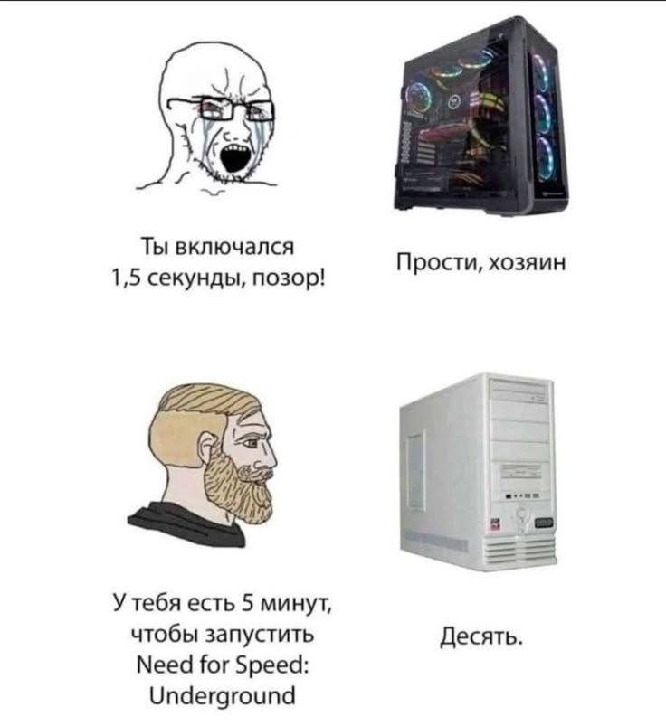 Для 65лвл пахана нужен камплюхтир, чтобы смотреть глухаря и всякую ржаку, дзен, ютуб и просто серфить эти ваши интырнэты. Ну и шахматы с покером, лол бля. Ссд 120гб с 10вин 64бит, хард на 500 чтобы был, i3-6100 на h110, 4+4gb 2133 ddr4. Этого хватит? Просто железо старое 10+ лет как бы и может там уже инструкций нужных нет и тд, а ещё видеокарту нет (нужна вообще?).