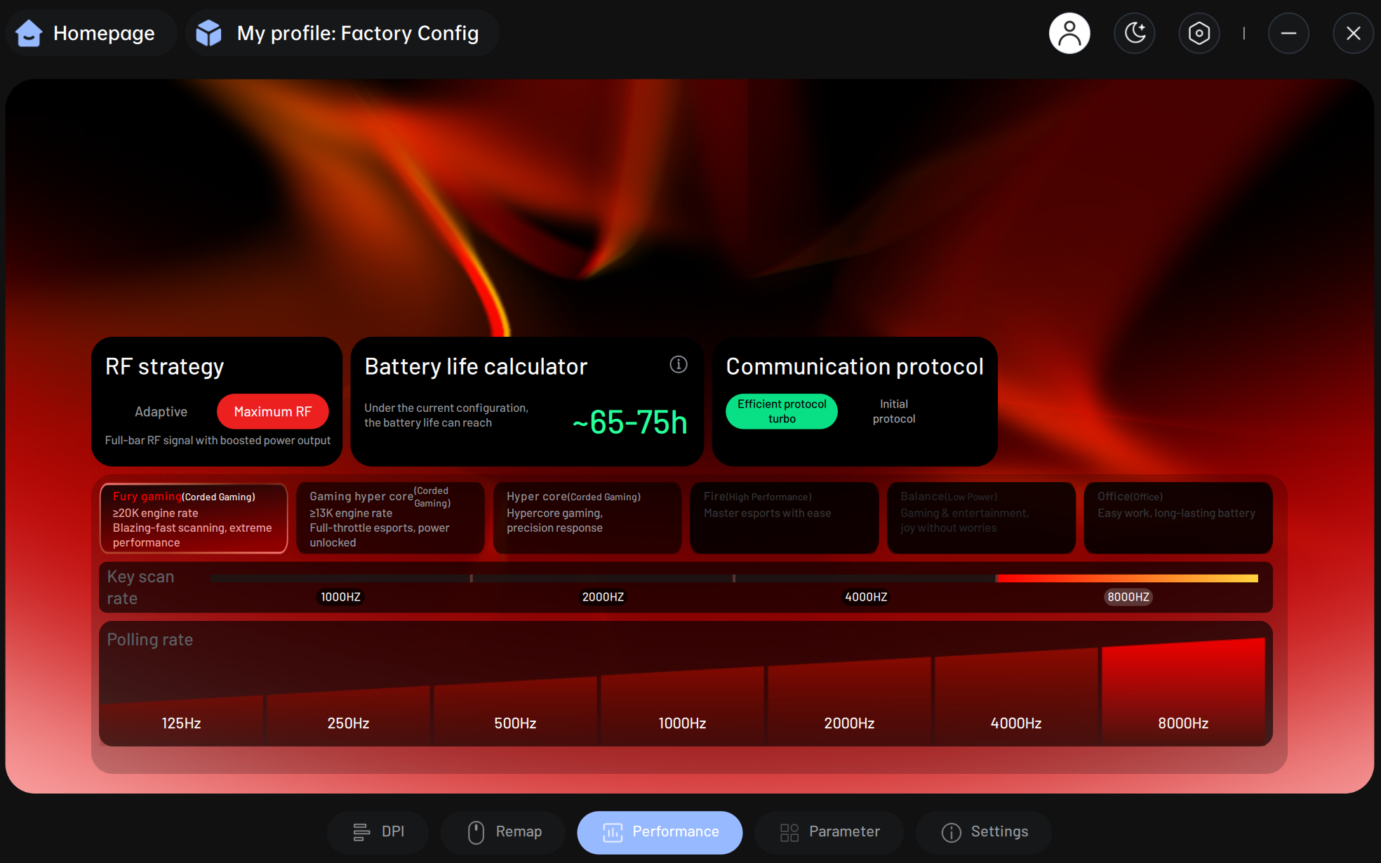 >>7603948 Если ты профкиберкотет на чемпионате, можешь оставить как на пикче в максимум. Если нет, то RF Adaptive, базовый протокол, balanced режим, скан клавиш и опрос на 1000 Hz.