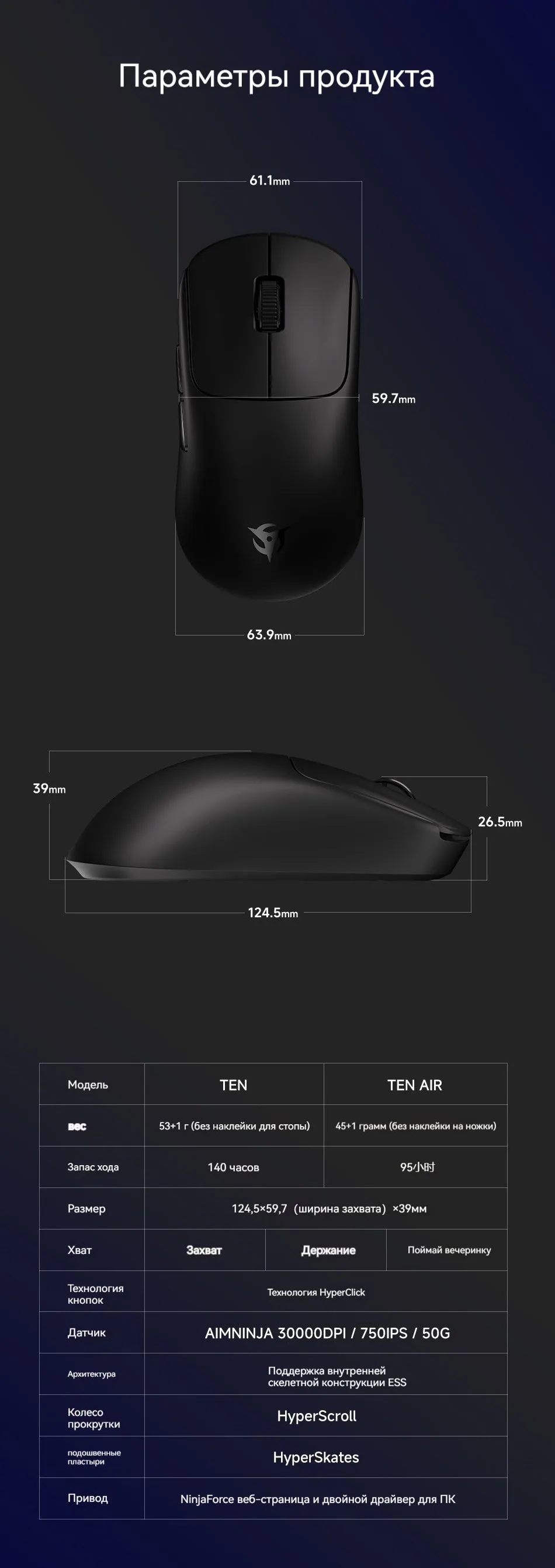 VT - 3395 сенсор, механические свитчи, механический энкодер, 800 mah VT - MAX 3950 сенсор, оптические свитчи, механический энкодер, 800 mah VT* Air MAX - 3950 сенсор, оптические свитчи, оптический энкодер, 300 mah