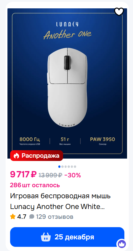 Если хочется старых брендов: Zowie, Pulsar, ASUS ROG Harpe II, Keris II Razer Viper 3 Pro, Deathadder: 3 Hyperspeed, 4 Pro Logitech Superlight: 2, 2c, Dex