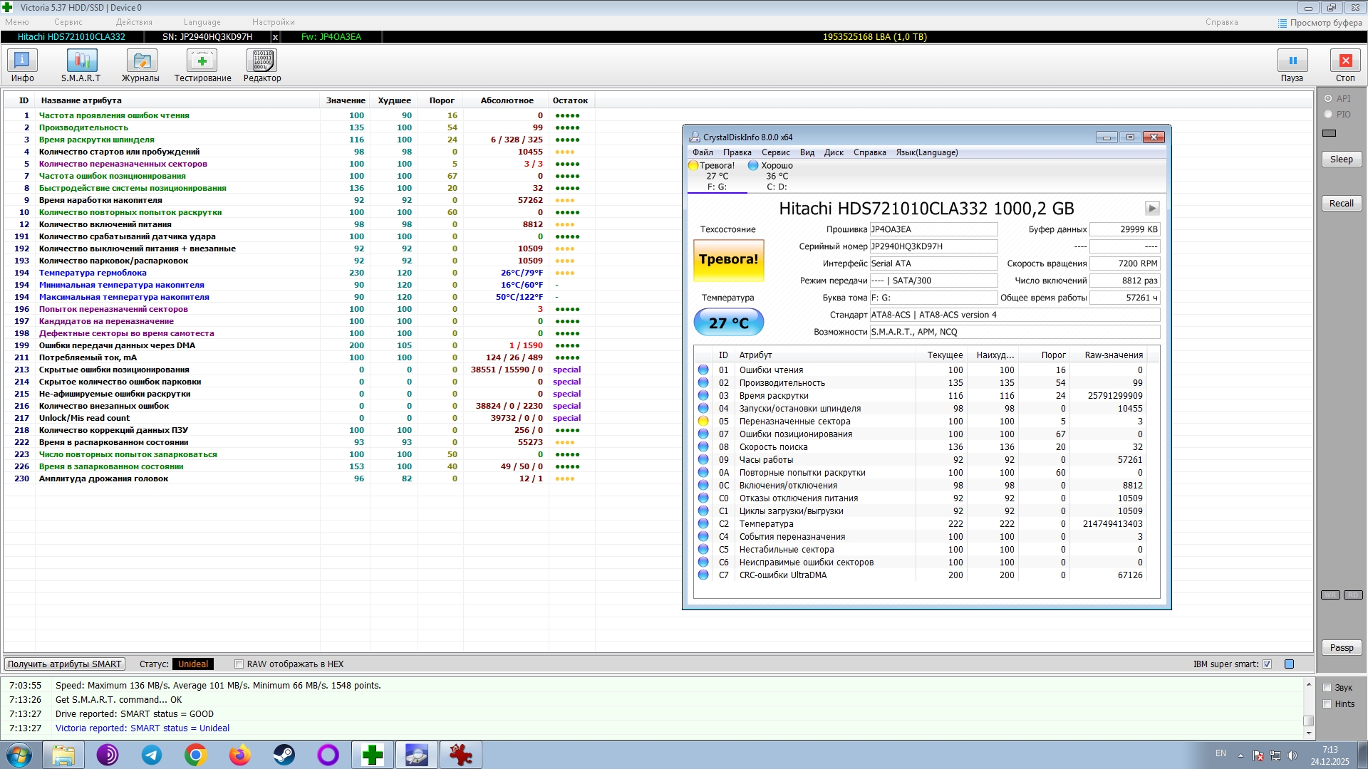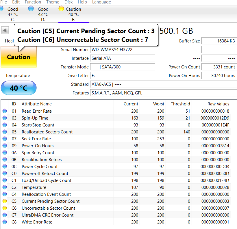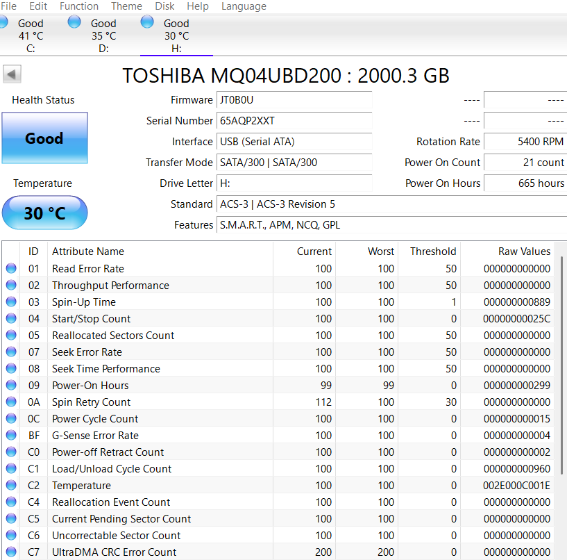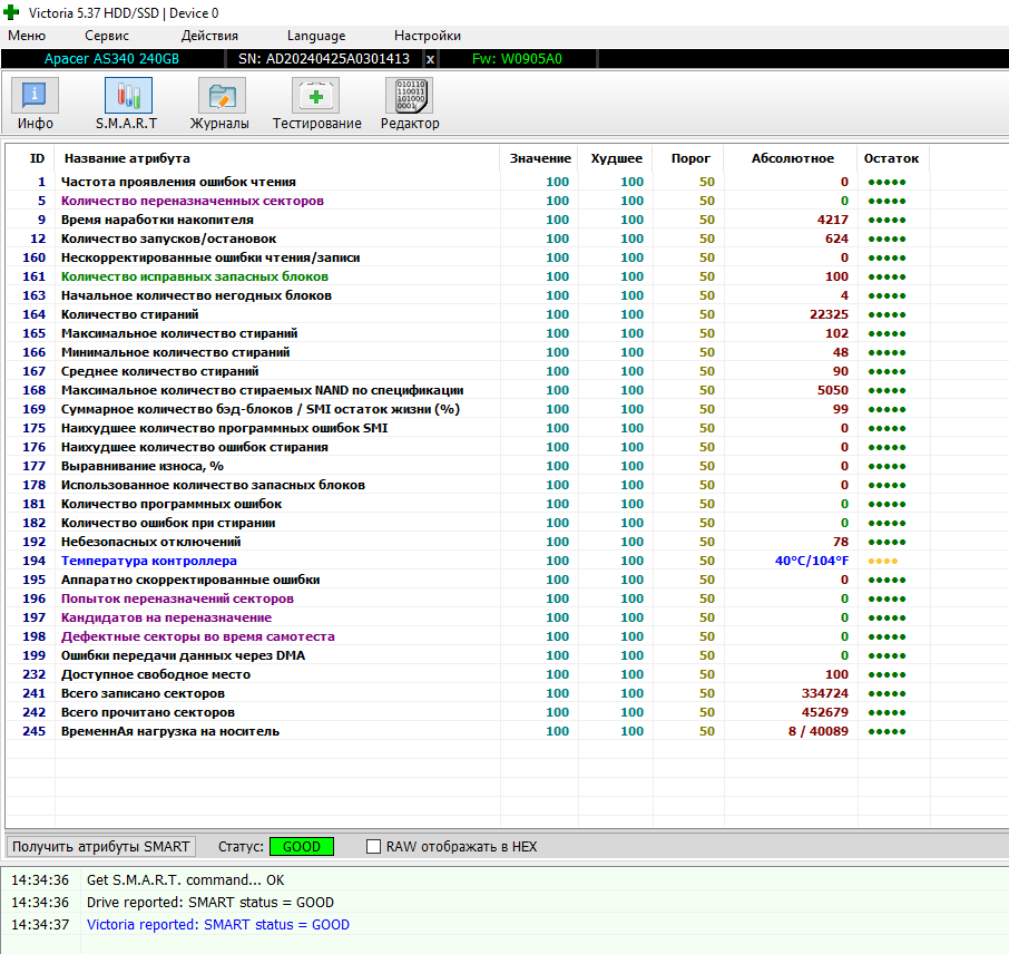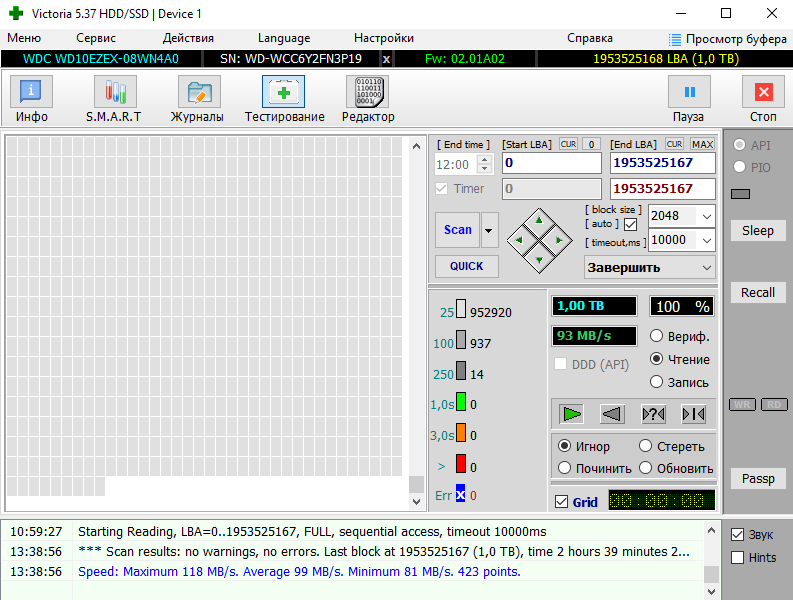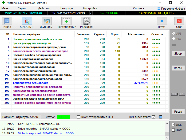 >>7638098 >>7638276 >>7638547 Короче, забрал я его, этот смарт не от него, но у моего такой же, разве что число включений чуть меньше и наработка 26к, а не 28, попробовал на него позаписывать/поудалять большие файлы, хотя 20 гигов для него это вообще ничего, работает бесшумно, разве что изредка постукивает, но это вроде для них нормально. Вику пока не гнал, но мне даже страшно сколько времени это займёт, тут и трёх дней на проверку не хватит...