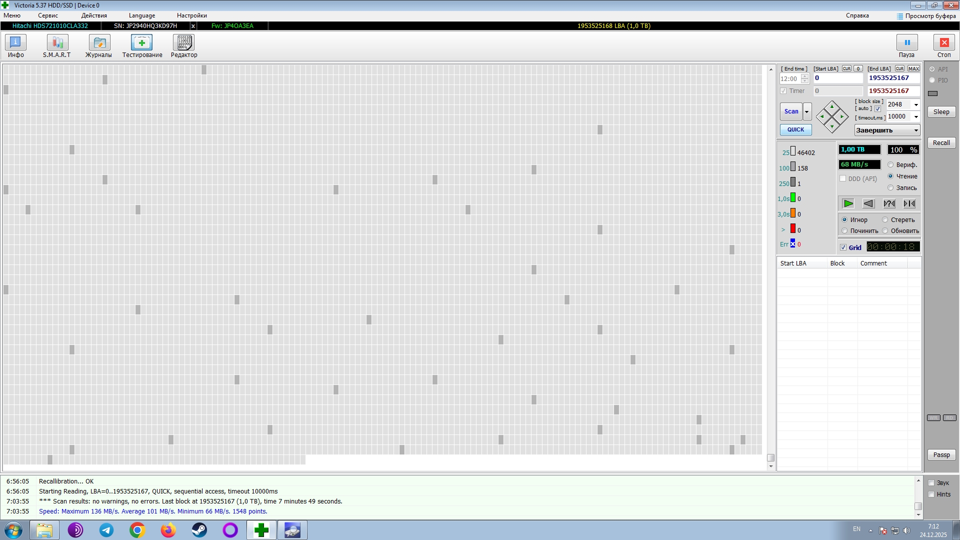 >>7612405 кстати о программе Victoria раз уж настало такое время (хотя я и ранее хотел восстановить) есть жесткий диск, сата WD 320 GB WD3200AAKS-00L9A0 2009 год написано на упаковке