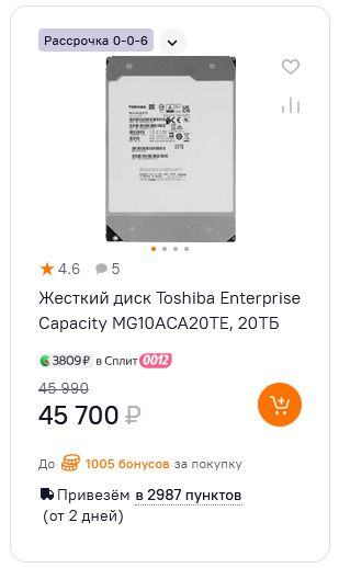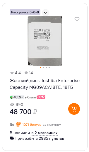 1тб диски стоят как стоили 4тб, 4тб как стоили 10тб, 6тб как стоили 16тб, а 10тб как стоили 20тб. Меньше всего ебанулись цены на диски объемом 20тб, они раньше стоили 35-40, теперь стоят 45-50. Зачастую дешевле нахуй чем 14/16/18 тб, которые по цене не особо отличаются, потому что повышение цен идет каскадно, снизу наверх, от дешмана до топа. Был момент когда 1тб стоил 10к и рядом 4тб стоил 10к, потом подняли цену на 4тб, и ря