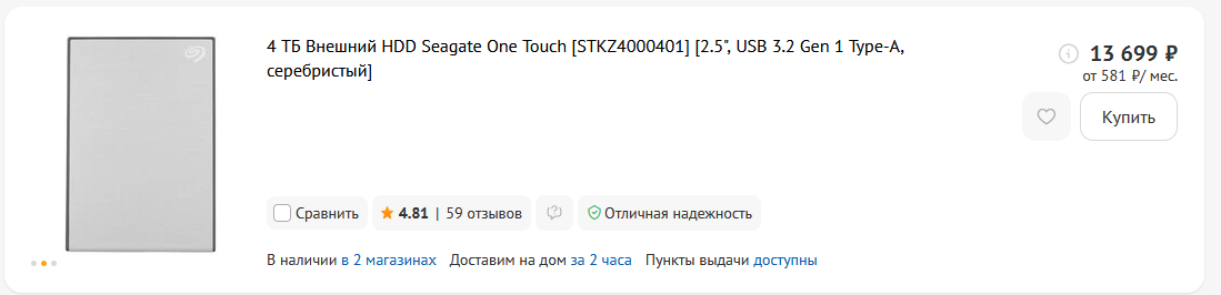 Ты либо покупаешь сейчас ссд по ссылке за 8к. Либо, если ты у нас рисковый парень и большой оригинал, покупаешь жесткий на 2/4, про них написал выше все. >Тошиба еще тоже котируется? В плане внешних дисков лучше вд ну или вот конкретно тот сигейт который я скинул на 4тб.