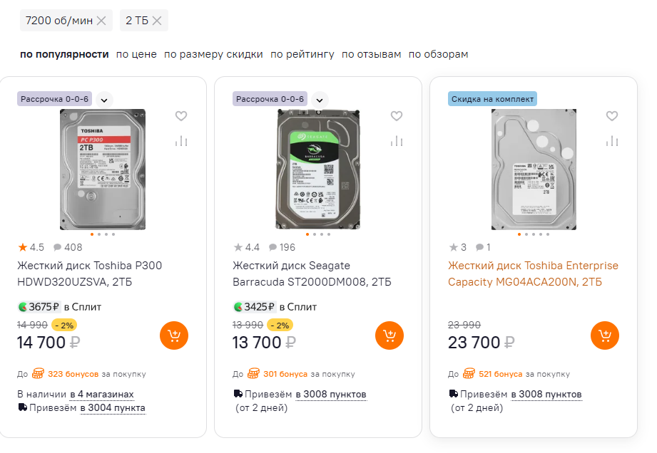 >>7640077 Где возможно купить с минимальной потерей времени на покупку и проверку, там и бери. Новый 1тб я бы не стал покупать, неактуально, бу от 3тб тогда уж.