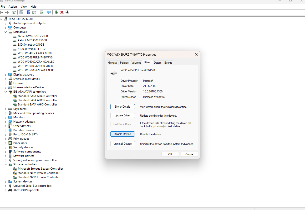 Новый внешний диск часто отключается и тут же подключается при работе с файлами (при закачке на облако, архивировании). Вроде всё норм, кабель рабочий, USB порт рабочий, другой диск с этим же кабелем и этим же портом работает идеально. Сам диск вроде тоже нормальный, битых секторов нет. Половину диска уже забил, регулярно чекаю хэши, файлы не портятся. Что тогда может быть? Плиз хелп.