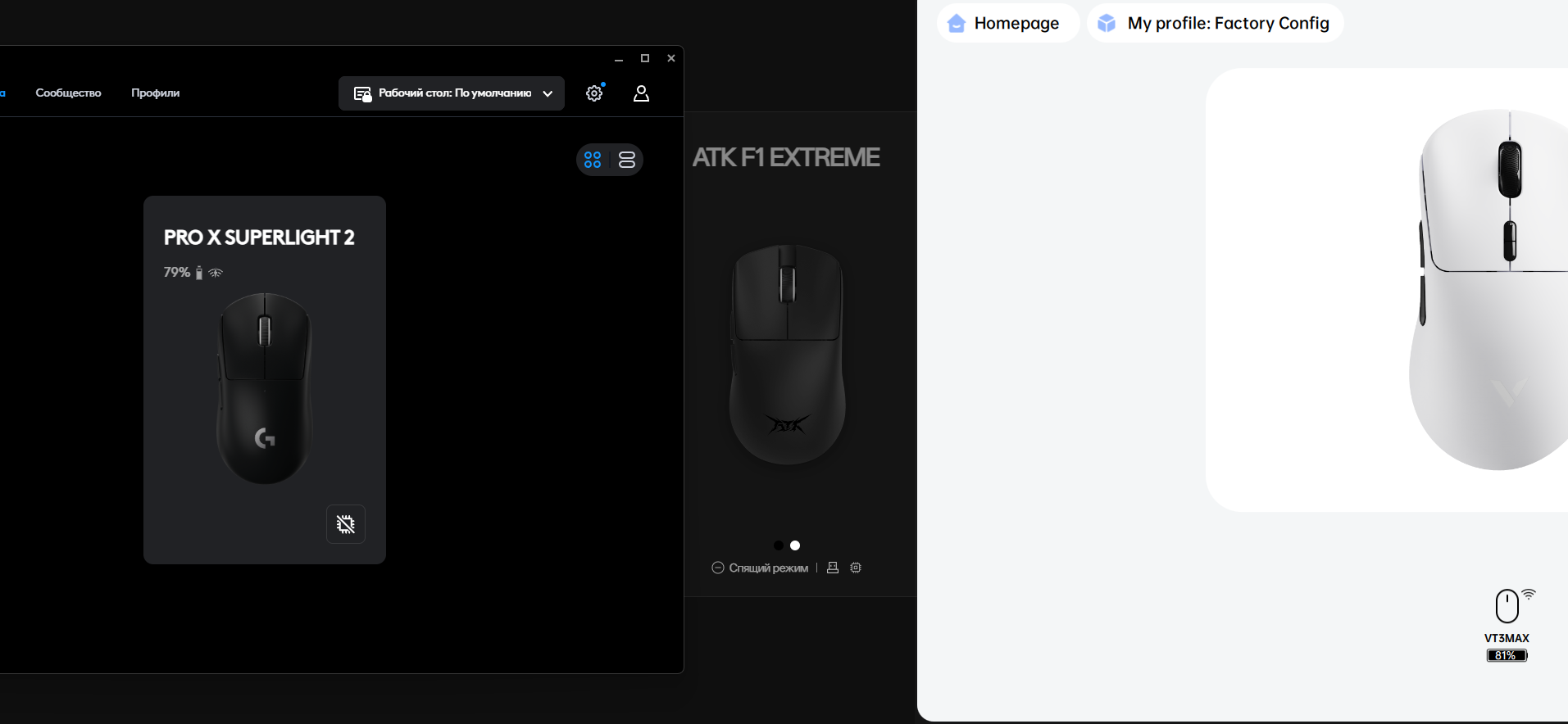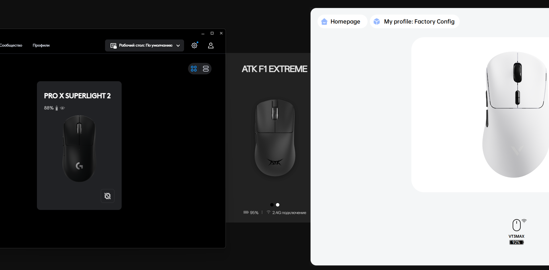 Обзор на VT3 Max (gen2). Буду сравнивать с ATK F1 Extreme V1 и GPX 2. Во-первых, начну с того, что она пиздец какая большая, ощущается гораздо больше суперлайта и в этом я проебался, ибо форма не подходит для меня, хоть и рука 20 см. 5 лет не держал EC2, но эта заметно больше. Я могу на ней нормально играть, но не хочу переучиваться на другой хват, это тяжело. Еще тут такая конструктивная особенность - дно по бокам приподнято, видимо чтобы массу уменьшить. Так вот, это образует щель, в которую иногда засасывает палец, лол. В любом случае это на оценку не влияет, форма то хорошая, тут мой проеб, надо было VT3s брать. Далее вес, тут наебали - 58 граммов, а не 53, она весит также как и суперлайт, но при этом заметно больше нее, так что неплохо в любом случае, а ведь это не air версия даже. F1 пушинка конечно по сравнению с ними, но она и сильно меньше. Сборка - тут она ахуенная, лучше чем у гпх и у f1. Супеплайт похрустывает при сжатии - этой вообще похуй, очень монолитная. Хуй знает может старый уже лохотек, но я точно помню, что первый суперлайт крепче был. Клики - обычно мне похуй да и сейчас похуй, нет разницы какие клики, когда играешь, но теперь на трех мышках одновременно разница ощущается, на суперлайте клики заметно лучше, сложно описать, но там они более четкие и яркие, тут помягче. Боковые хуже всех у гпх, лучше у атк, тут просто нормальные. Еще 2 доп кнопки под скроллом, мне не нужны, но прикольно. В air наверное уберут, для уменьшения веса. Скролл везде хуевый, мне только у зови нравился с четким тугим ходом. Ладно хоть ложные срабатывания вроде не ловил, как на атк и логитеке. Самое прорывное тут - это аккум, точнее расход батареи. 8 процентов за неделю, настройки пикрил 2, в игре ставил пикрил 3, но я мало играл. К слову, в обзоре на ф1 писал, что зарядка улетает слишком быстро, это все-таки оказалась настройка пикрил 4, тогда еще не было калькулятора оставшегося заряда в драйвере, впрочем все равно не уровень суперлайта даже. Но я так понимаю все мышки на 54 нордике так будут держать, как рапу. Глайды - вот тут единственный проеб. Тайгер айсы много лет использую - они всегда белые, на атк стоковые - белые. Тут, как и на суперлайте какие-то серые глайды и они нихуя не едут. Тогда бы уж как атк не приклеивали с завода, а выбор потребителю оставляли. ПО - хорошее, все есть и выглядит хорошо. Покрытие обычное, претензий нет. Вроде все написал, за 4к уже 5+ топ эргономика - это считай бесплатно.