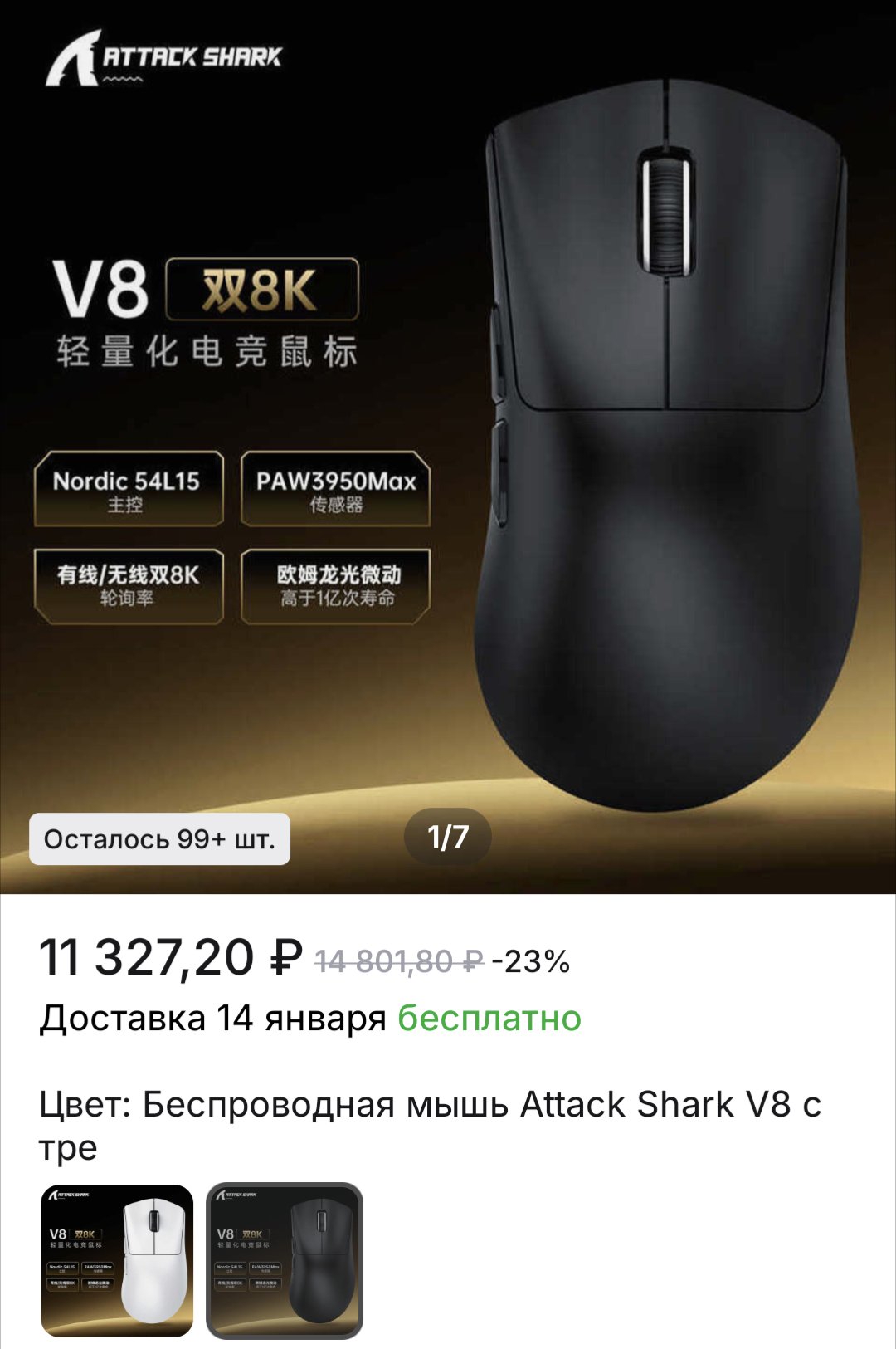 Прогрелся на VT3 с озона, если у вас комбинированный хват и вы привыкли держать в руках что-то чуть больше хуя, то лежит очень приятно в моей 18см коротышке. Качество сборки лучше чем на прошлом вайпере, боковые кнопки действительно нажимать комфортно и нет ощущения что мышь при этом испытывает физическую боль, конструкция приятно монолитная. Но колёсико это пиздек, на 5ти летнем рейзере оно отщелкивается строже и точнее, здесь же это просто какой-то позор для домохозяек, так и передай у себя рапубот, иначе больше не куплю.