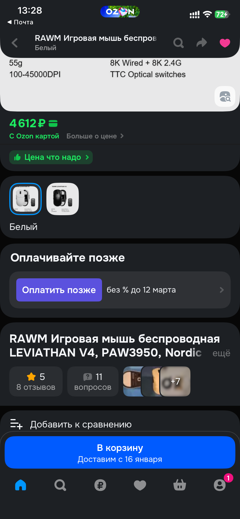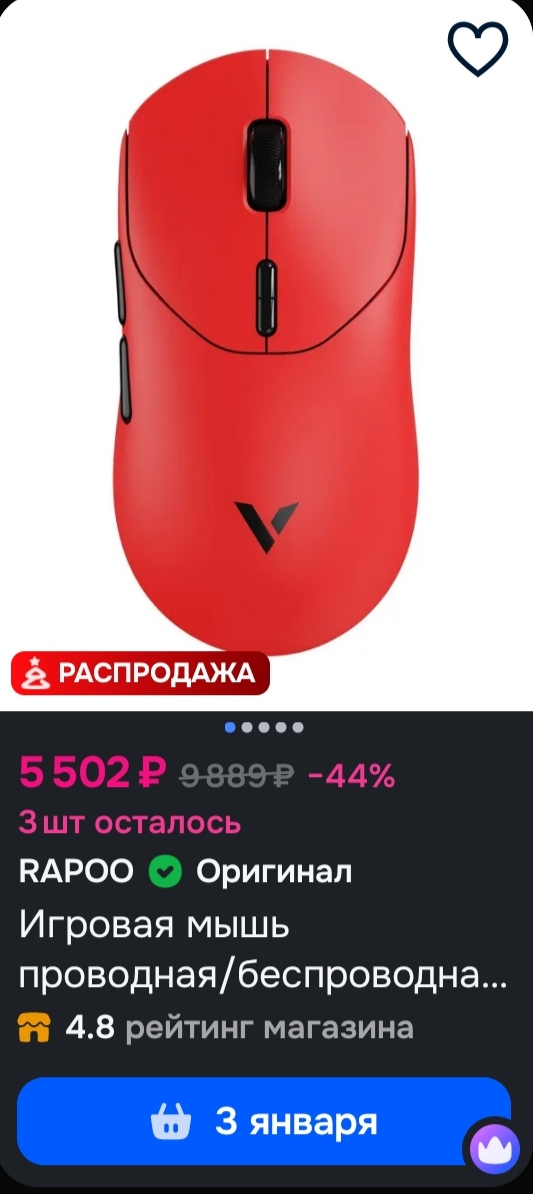 >>7612802 Так, про rapoo я тебя понял, но я смотрю ты вот шаришь за сенсоры и брак. Вот чтобы ты посоветовал, если я у тебя спросил, как у знающего, за мышку до 4к рублей с озона и чтоб доставка до 3 дней?