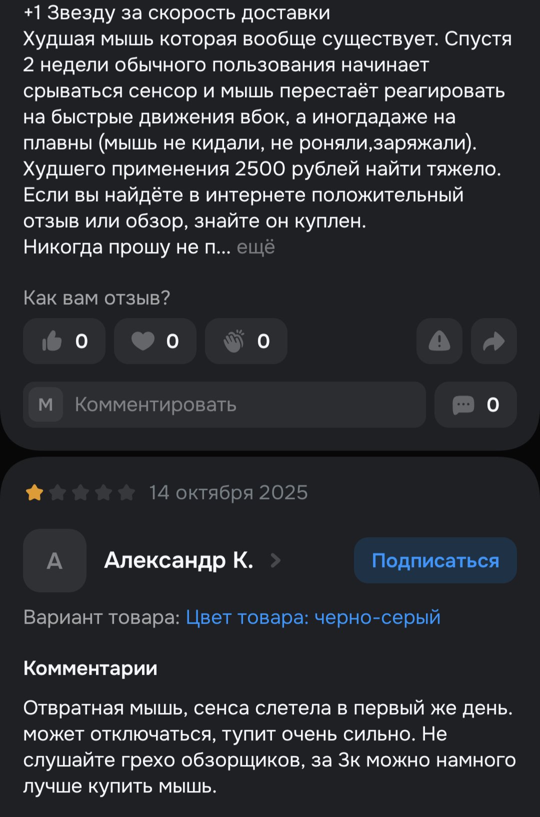 >вам в голову насрали, чтобы говно за оверпрайс покупали, а вы и рады. пиздец Ты тред читал? Покупается дешман за 3-5к, от ААА бренда мыши начинаются от 10000