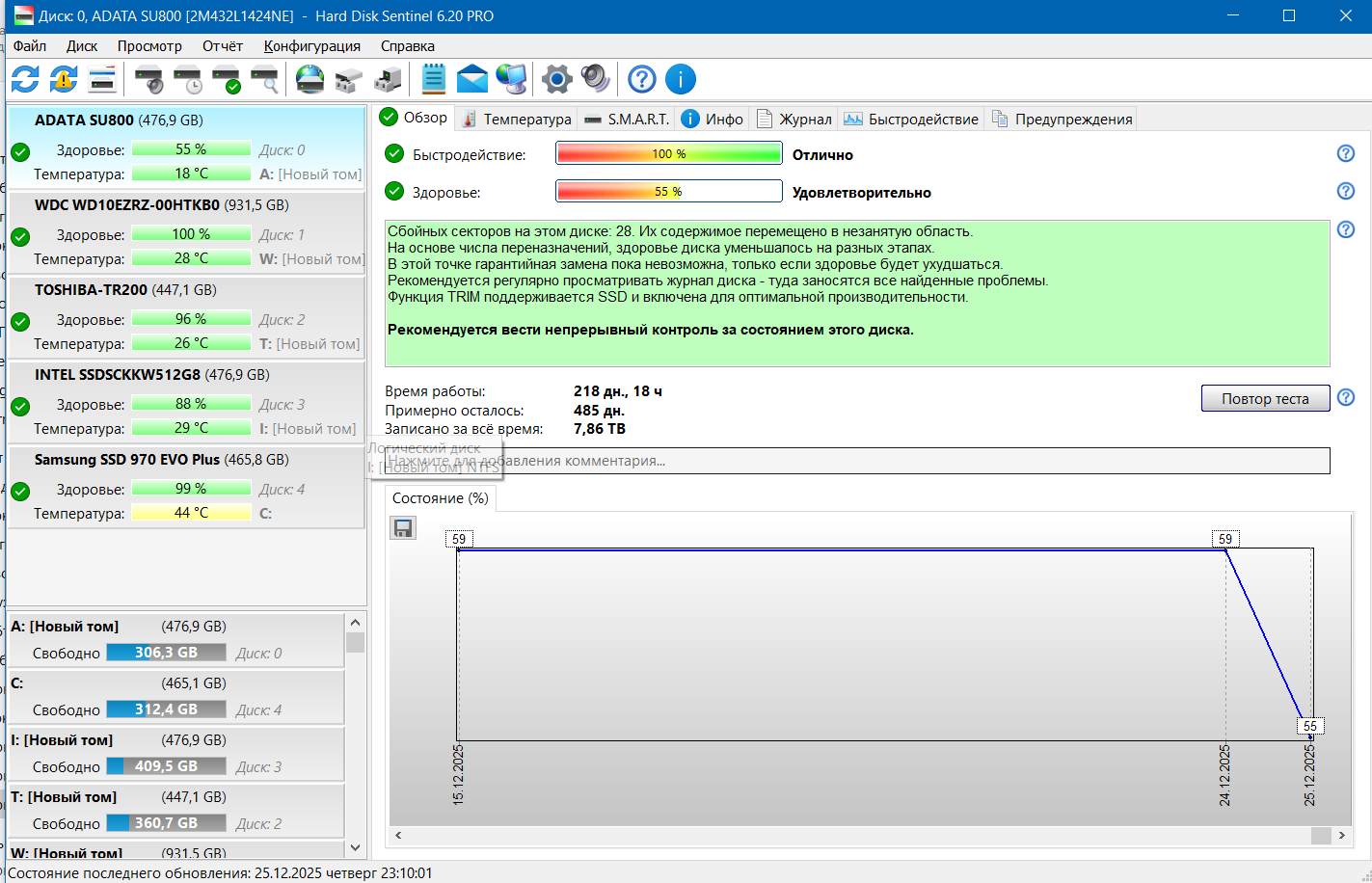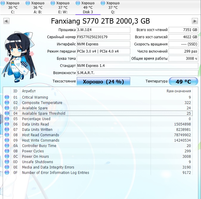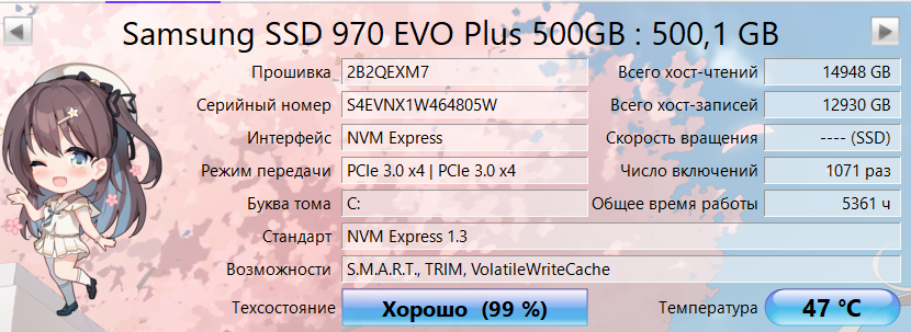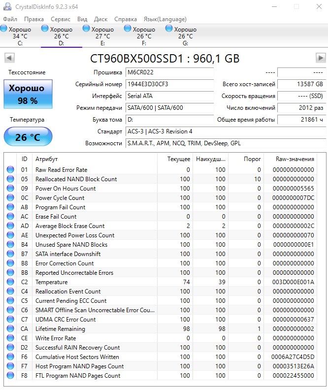 При вопросах о состоянии ссд по смарту переключай программу Crystal DiskINFO в десятичный режим! (ОП-пик №2)!