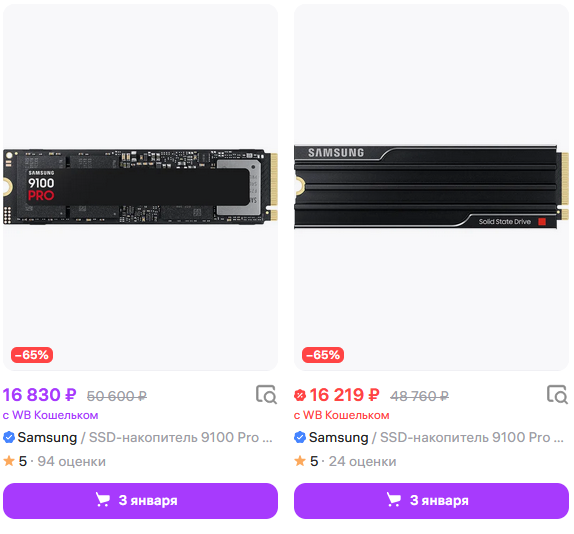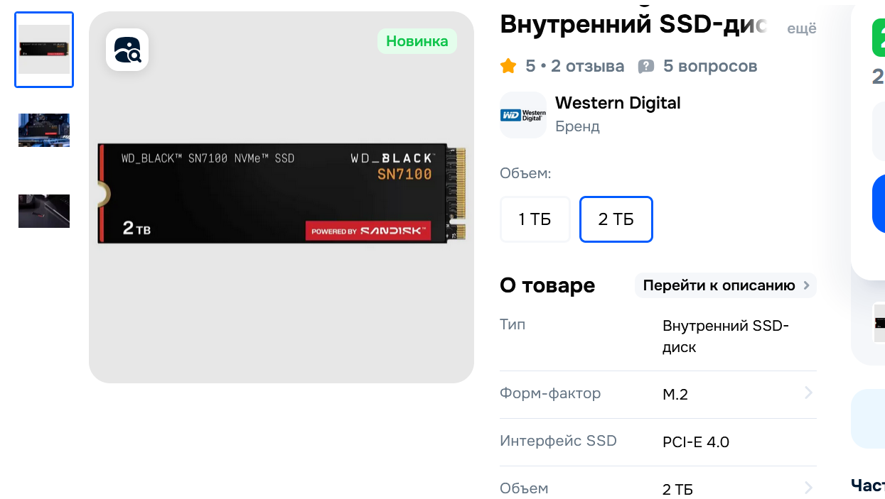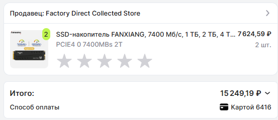 1) 21270 руб - Patriot Memory 2 ТБ Внутренний SSD-диск P400 V4 M.2 PCI-E 4.0 (P400VP2TBM28H) 2) 26383 руб - Samsung 2 ТБ Внутренний SSD-диск 990 PRO with Heatsink M.2 PCI-E 4.0 (MZ-V9P2T0CW) - хуй знает влезет ли с теплоотводом либо безрадиаторная версия на тыщу дороже в рыгарде 3) 31990 руб - Samsung 9100 PRO (MZ-VAP2T0BW) 4) 26917руб - Samsung 2 ТБ Внутренний SSD-диск 990 EVO Plus (MZ-V9S2T0BW)
