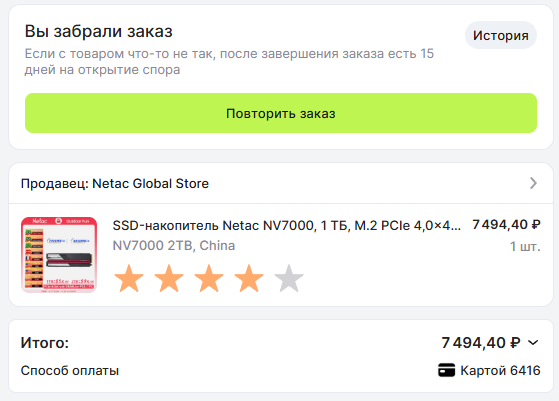 >>7647166 конечно ведь ты покупаешь то что на картинке а не фото реального продукта и потом доказывай что не верблюд, какая проблема показать настоящий ссд со всех сторон кроме серийника? видимо проблема какая то...