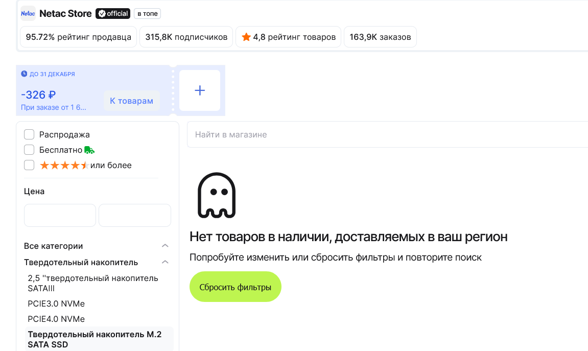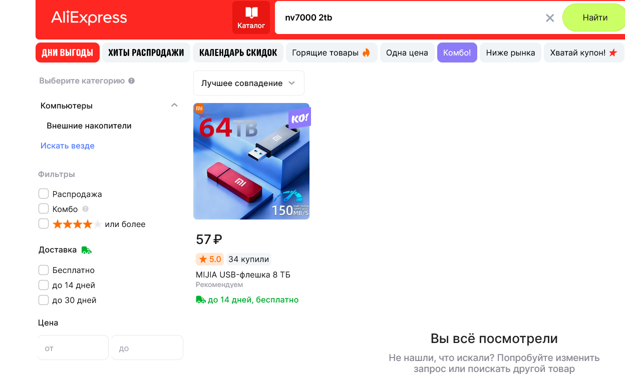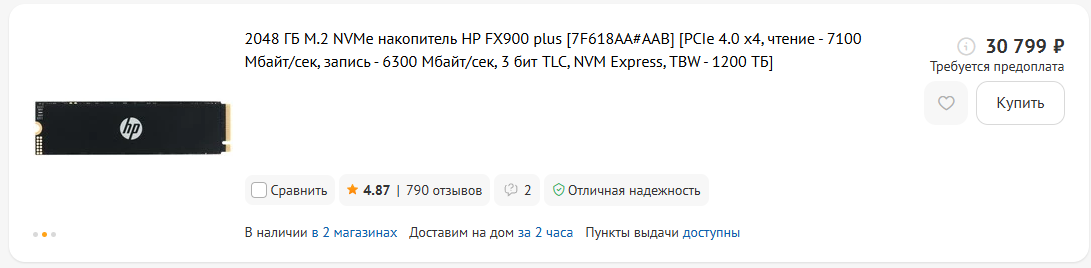 Итак зайдем в ДНС и посмотрим что там среди двухтерабайтников лучше китайцев. Отсортируем по цене. Acer RE100 сата говно. хуже китайца на порядок AGI AI298 хуже китайца по всем существующим параметрам Solidigm P41 Plus Series хуже китайца ADATA XPG GAMMIX S55 хуже китайца WD Green SN350 хуже китайца Apacer AS2280Q4X хуже китайца Apacer AS2280Q4U хуже китайца SiliconPower UD90 хуже китайца ADATA XPG GAMMIX S60 хуже китайца HP EX900 Plus хуже китайца WD Blue SN5000 хуже китайца ADATA LEGEND 710 хуже китайца ADATA LEGEND 860 хуже китайца Kingston NV3 хуже китайца HP FX900 plus охуеть вот первый ССД лучше чем китаец стоит всего лишь 30799 рублей. Минимальная цена 12599 что 50% дороже Нетака за 8к деревянных.