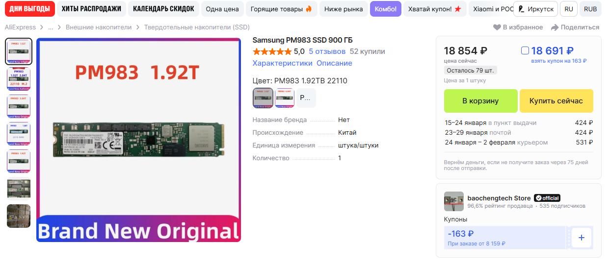 Однако при покупке смотри на рейтинг торгаша. Раньше PM983 бракованные не продавали но последние пару недель появилось дохуя подозрительных магазинов с заниженной ценой и низким рейтингом.