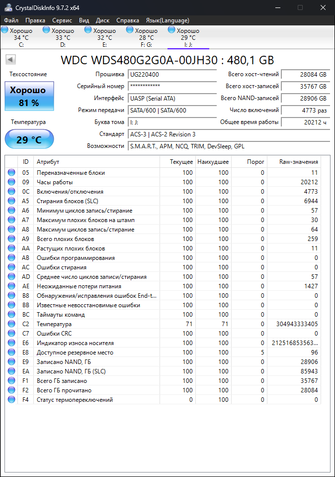 будьте предельно осторожны при покупке б/у дисков так как у подавляющего большинства ссд можно сбросить SMART! если у диска power_on_hours около нуля или меньше нескольких сотен то смарт может быть сброшен, лучше ищите диски с несколькими тысячами power_on_hours