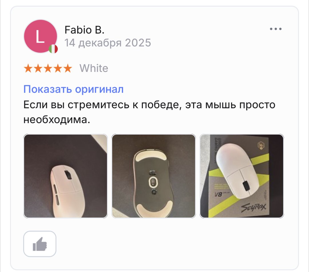 >>7624953 Ля, я вообще не понимаю кайфа от легких мышек, мне именно каин этот нравится. Мой кент году в 22-м с моего совета выбирали ему мышь всем тредом тоже купить себе дырявую мышку вроде от Glorious симметричную какую-то. Мне не зашел легкий вес, будто игрушку какую-то держу, хз. Ну и в каин мне не только вес нравится, но и в первую очередь ФОРМА и материал покрытия. Форма божественна, материал прекрасен. С колесом все хорошо уже 5 лет, полет нормальный я читал, да, брака у них много было с ним.