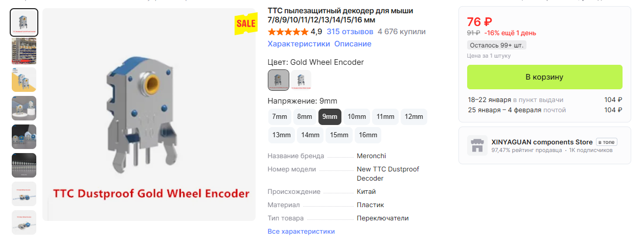 Энкодер колеса для замены: Alps, TTC gold dustproof, Huano