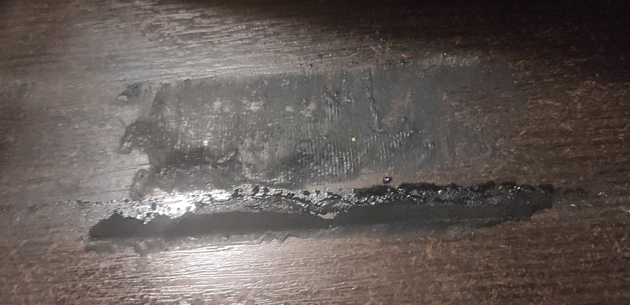 >>7623286 Вот на пикриле видно, только что сфоткал. И такая хуйня у меня в основном по краям, но ближе к центру тоже бывает. Верхний след от старого ковра, а нижний длинный -- от текущего, он посвежее. С самого ковра прилипшие куски нередко отрываются и остаются на столе, а иногда просто след оставляют, как верхний.