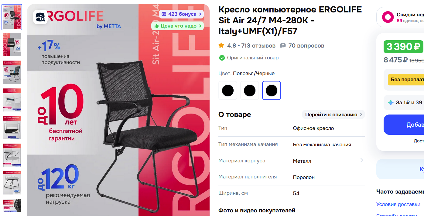 Вот такое кресло взял за 4000 рублей. После F1. https://ozon.ru/t/M487NJt Что могу сказать, за 4 тысячи это норм таьуретка, железная, мяшкая, сетка хорошая, до 100 кг уверенно, я вешу 90, все стабильно. Удобнее чем Evolution F1 и ErgoLine2. Своих денег стоит, но как покажет себя на долгую, не знаю, кажется что сварка тут такое и может развалиться где-то. Лушче за эти деньги хуй купишь. Подлокотники не ставил, хотя они тут нормальные. Если есть вопросы, задавайте. На Самурае от них я сидеть не могу, ебаный парадокс. До этого год сидел на Икея Флинтан и оно было удобнее в разы. Сука блядь.